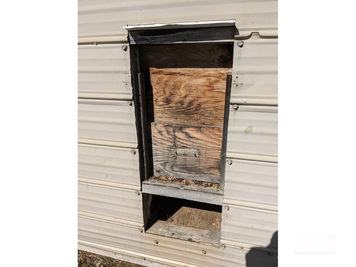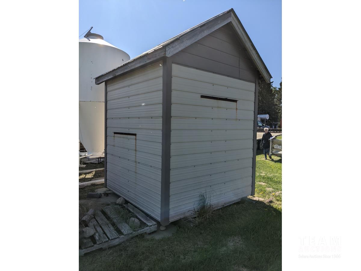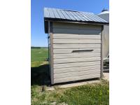 8 ft X 8 ft wood construction with metal cladding & roof, wood skids, aeration screen