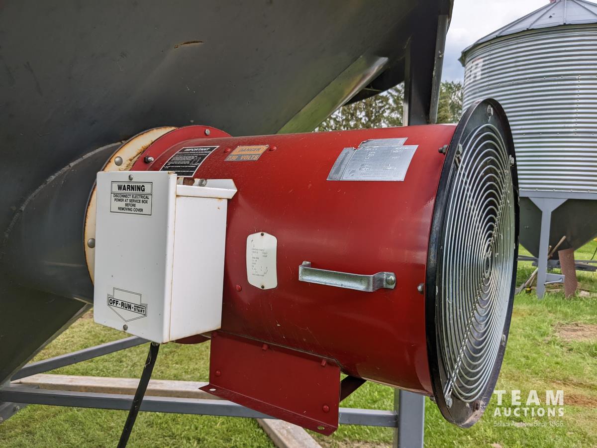 2200± bu cap, 6 leg Wheatland hopper with horizontal aeration, one steel ring foundation, Edwards Inline centrifugal 3 HP 230V fan, ladder, opener