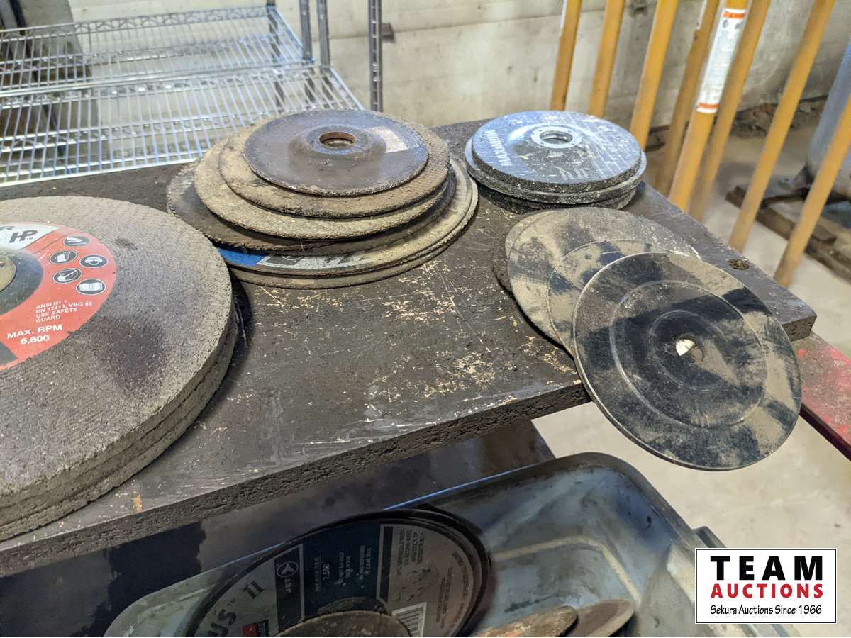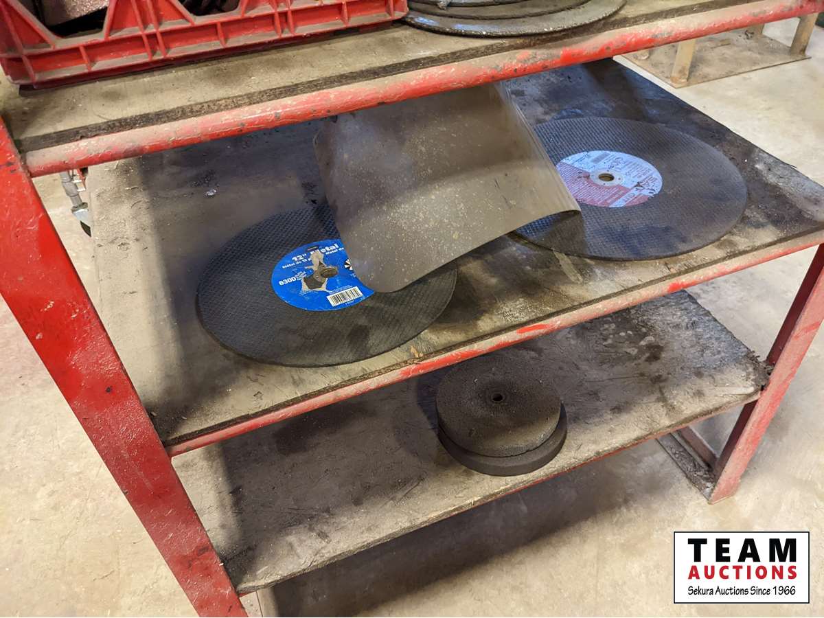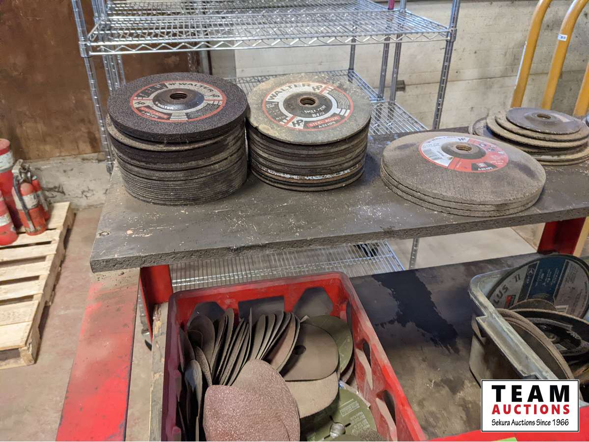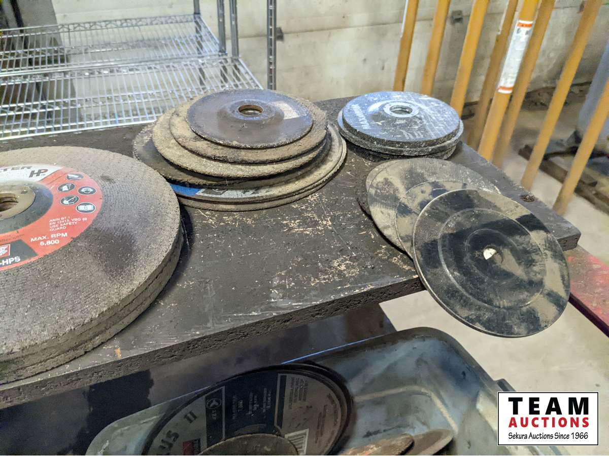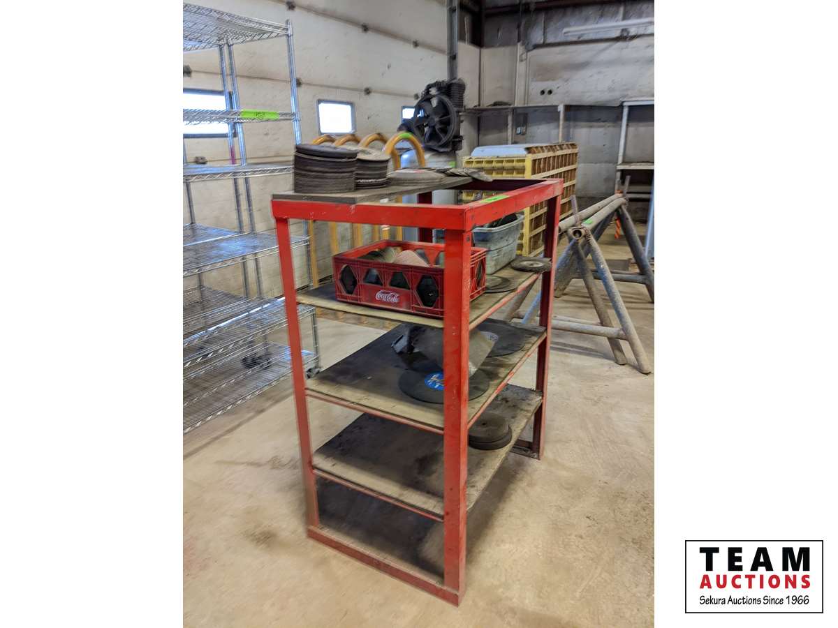 359 Custombuilt Metal Shelf Unit W/ Qty of Grinding Discs