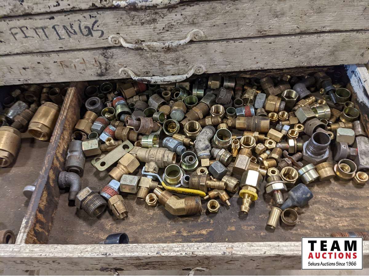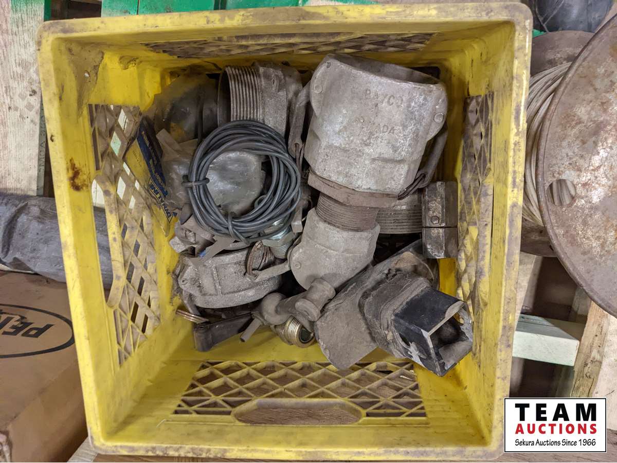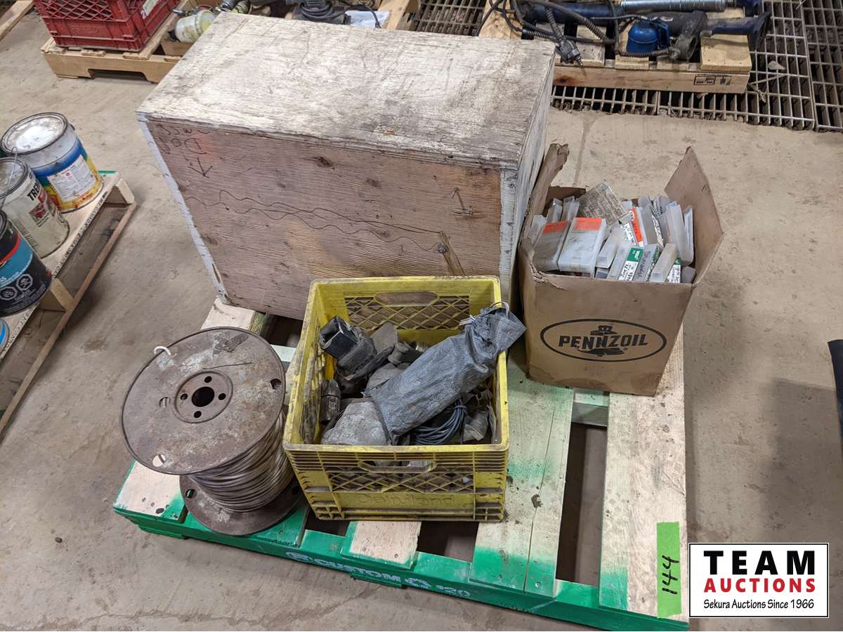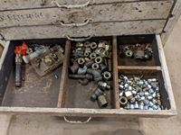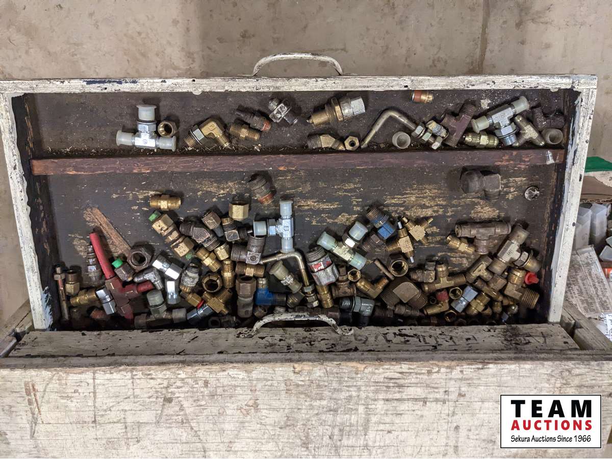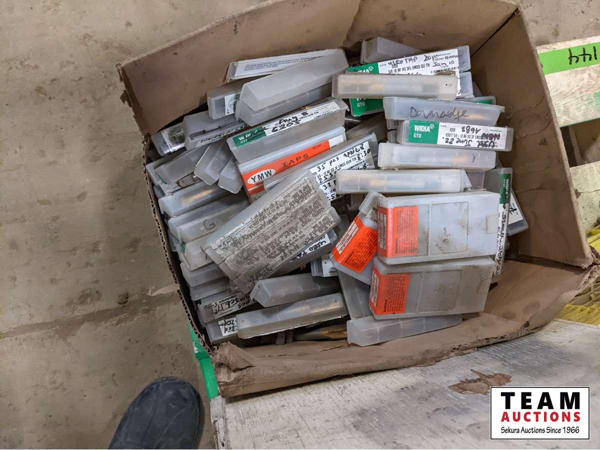 (1) box of 5/8 inch fine thread unused taps, various cam locks, various fittings, wire, miscellaneous