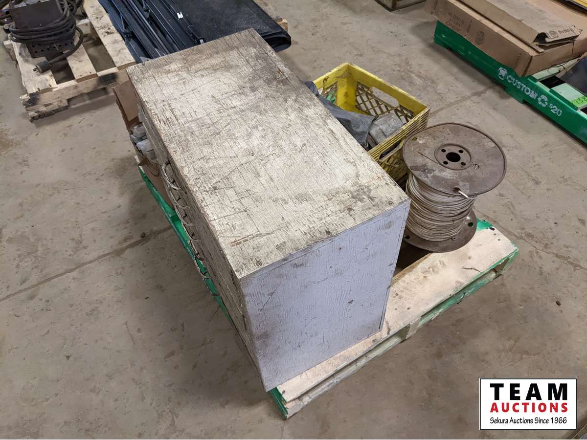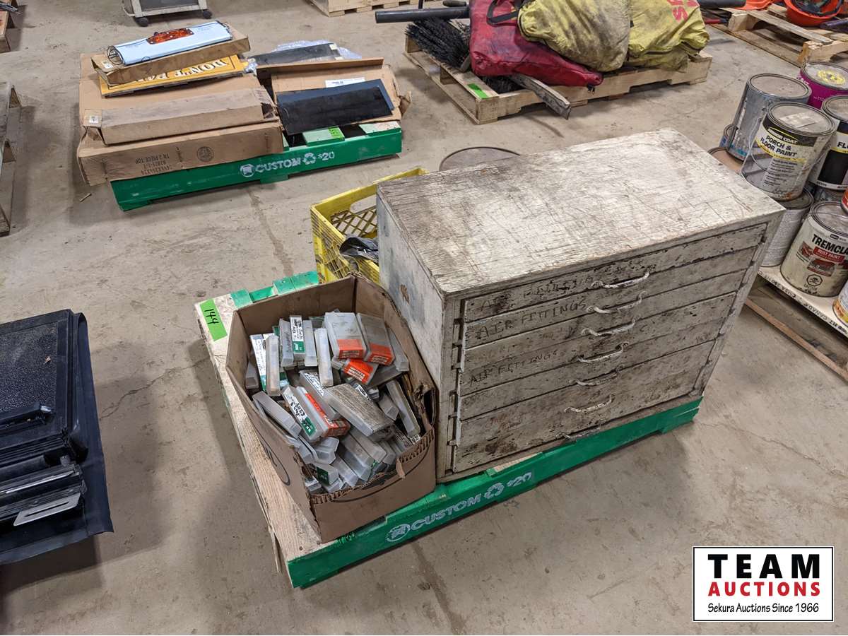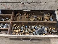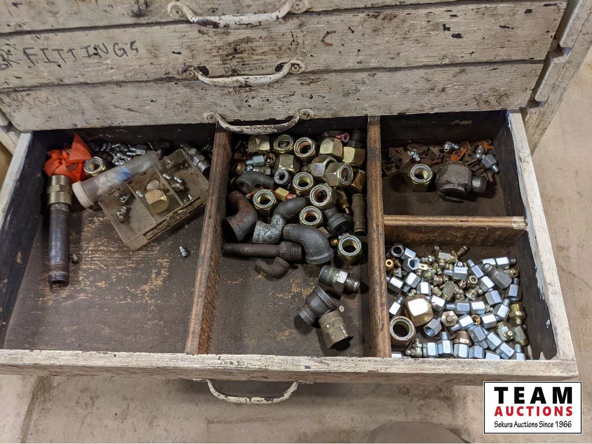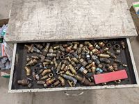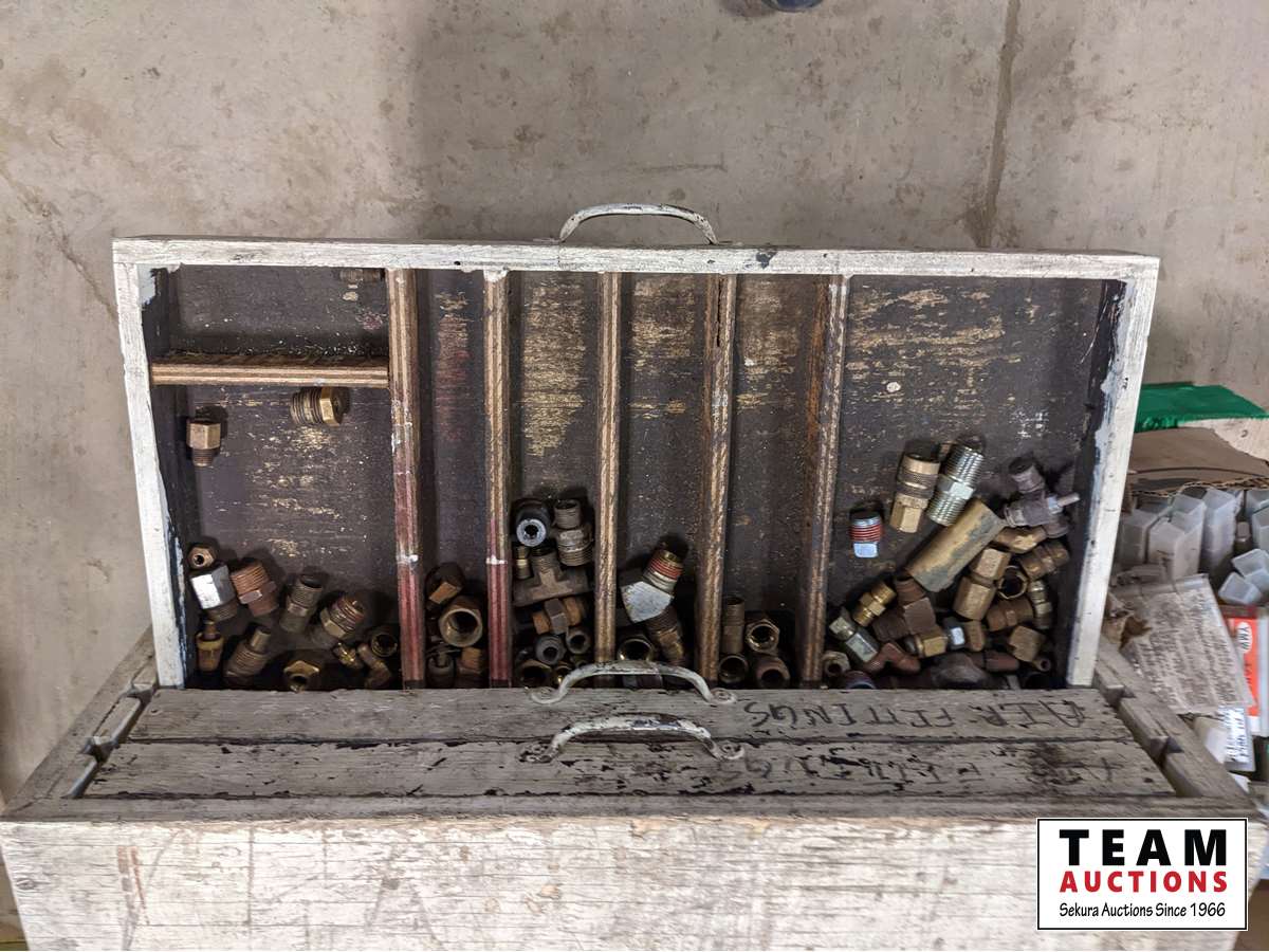 (1) box of 5/8 inch fine thread unused taps, various cam locks, various fittings, wire, miscellaneous