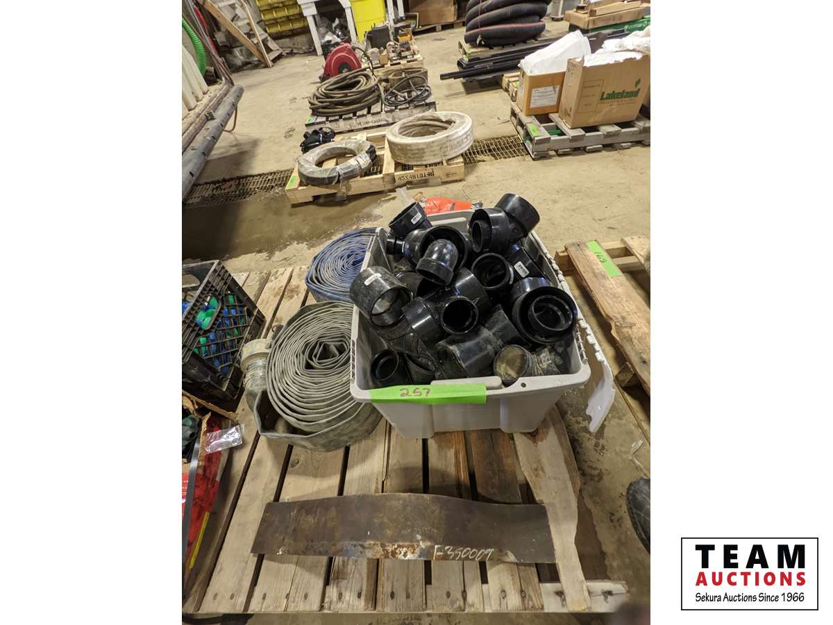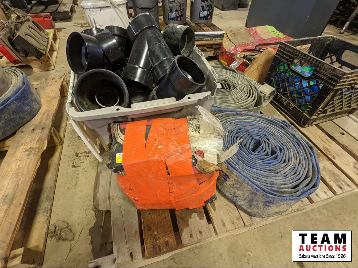 243 Qty of ABS Fittings, Two Lay Flat 3 Inch Hoses, Box of 2-1/2 Inch Nails