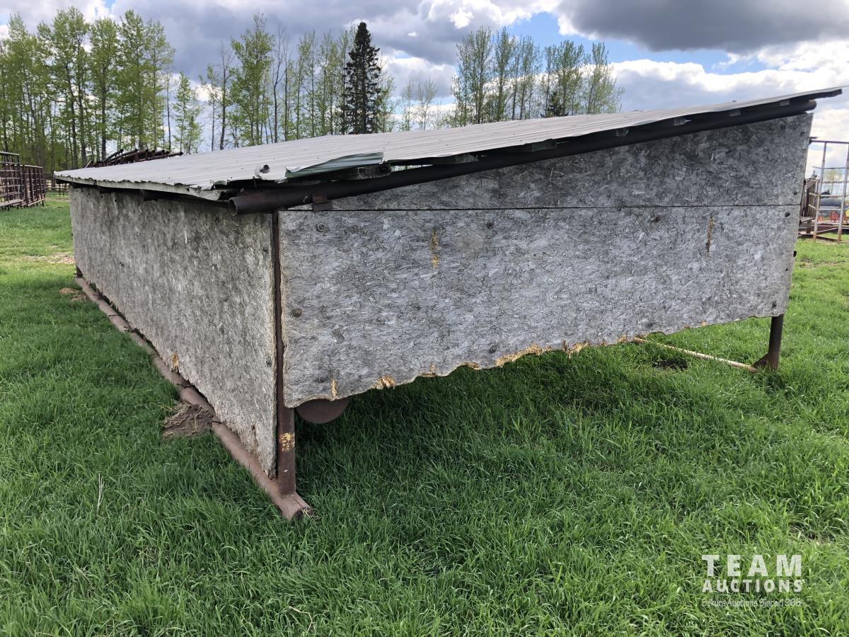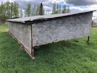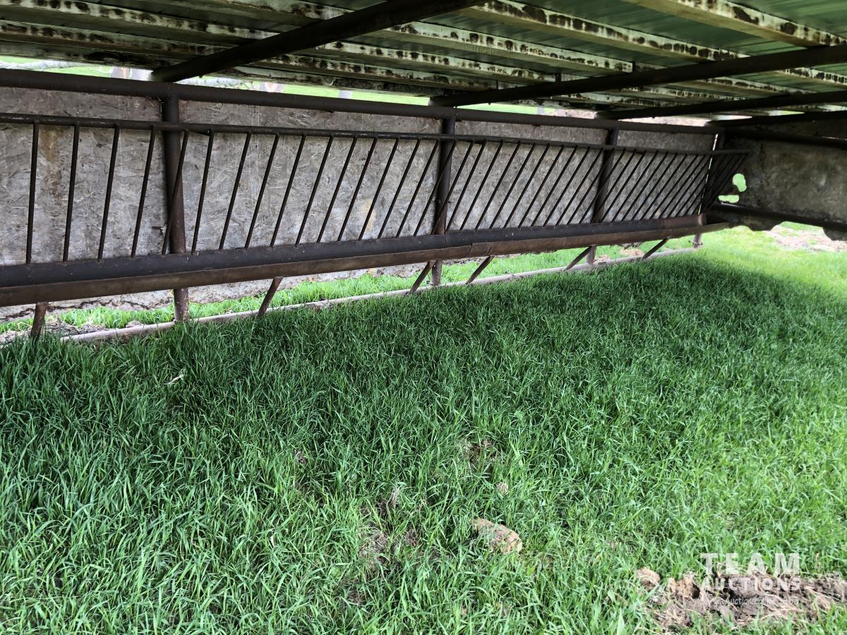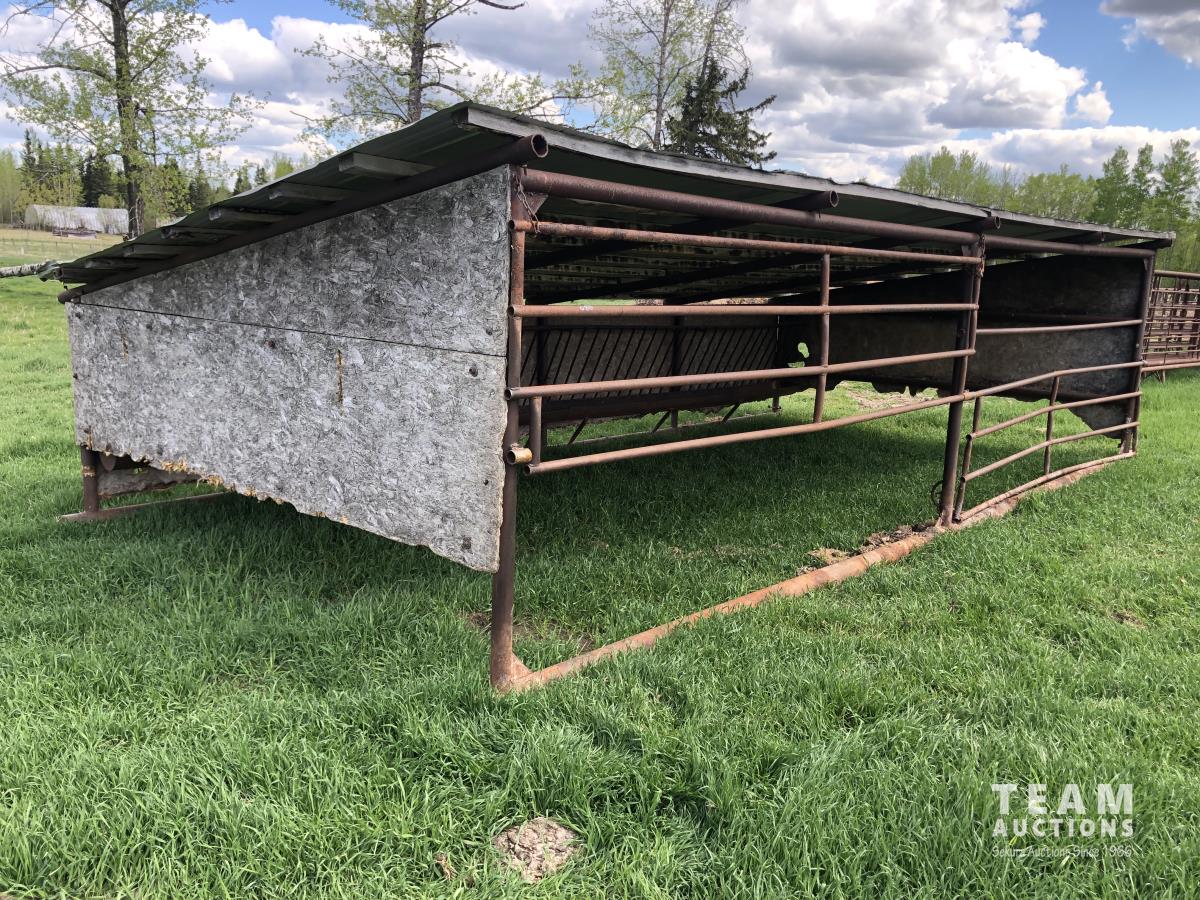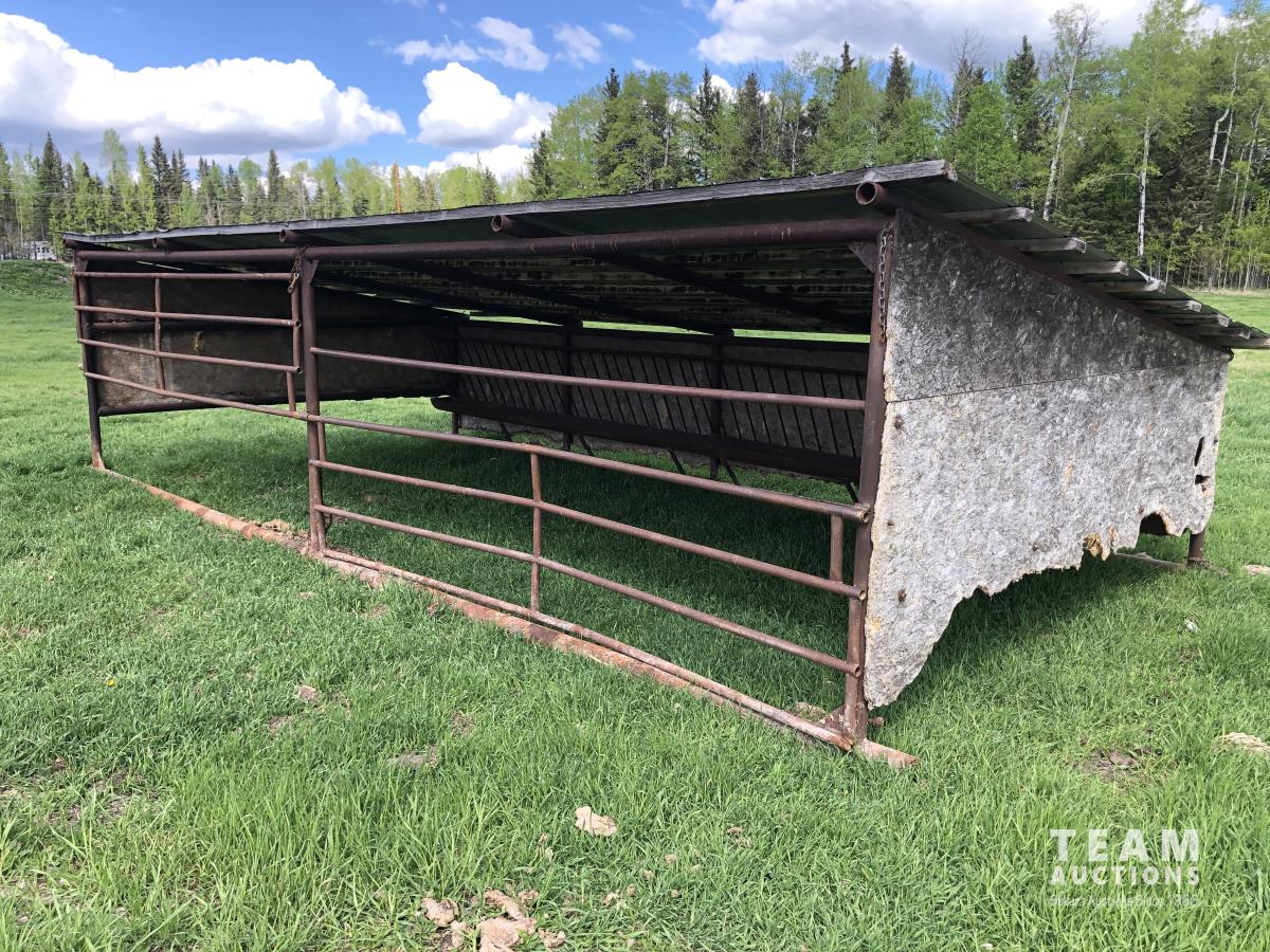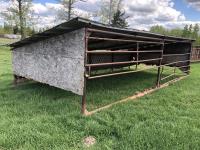 with rear grain bunk, creep gates, pipe frame, metal roof