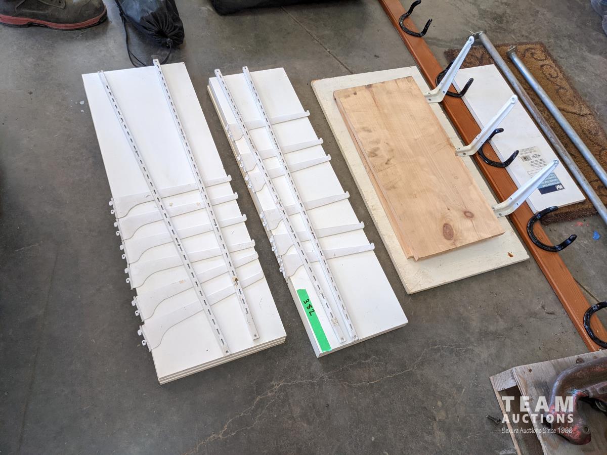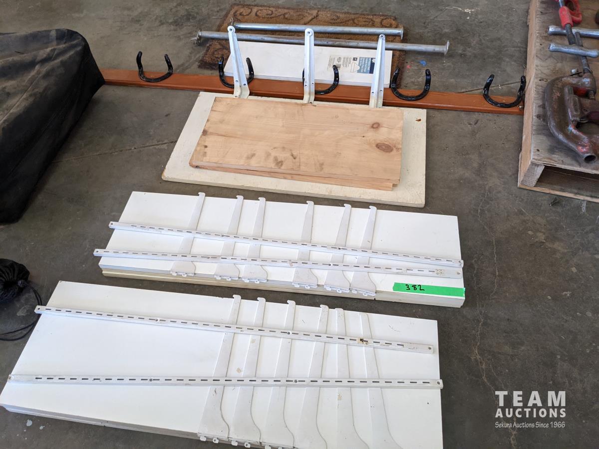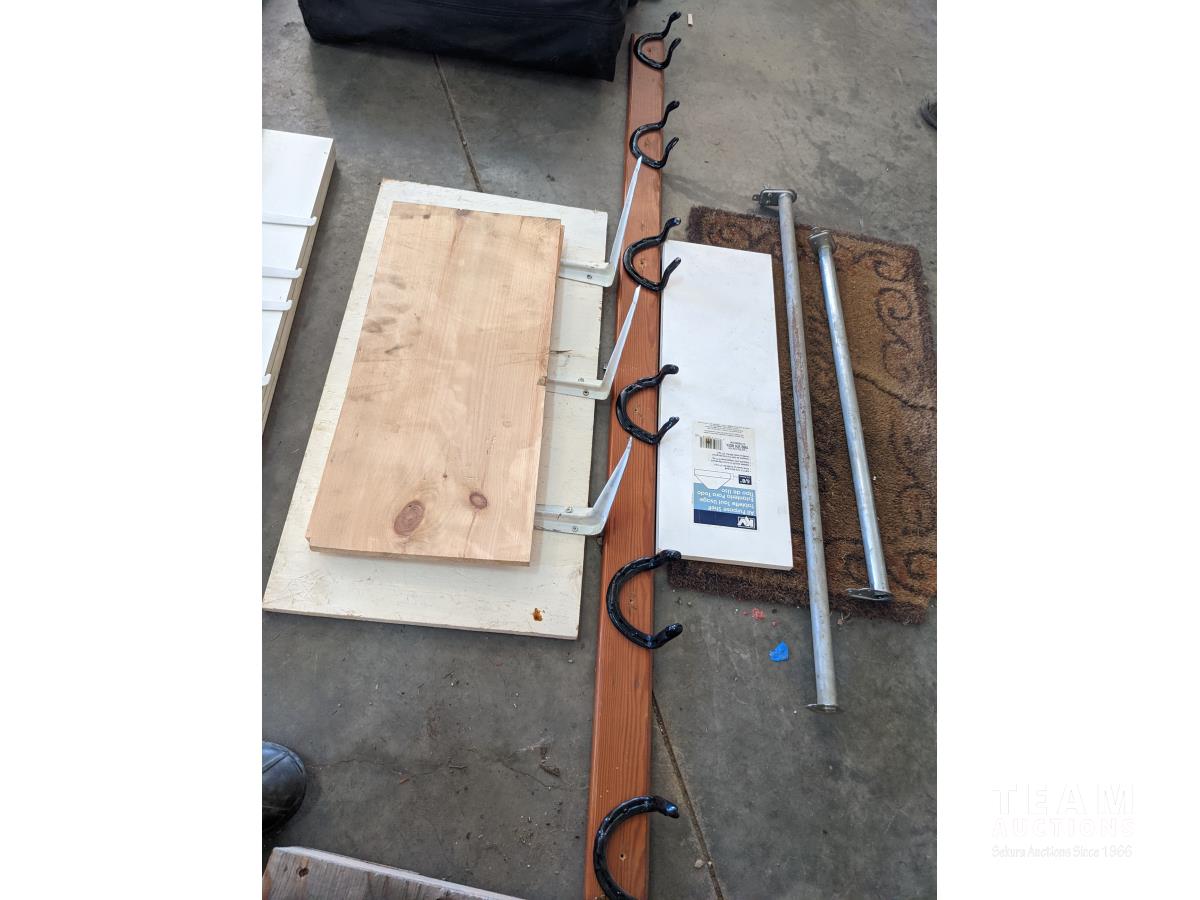312 (2) 3 Shelf Wall Units, Horse Shoe Coat Rack, Welcome Mat