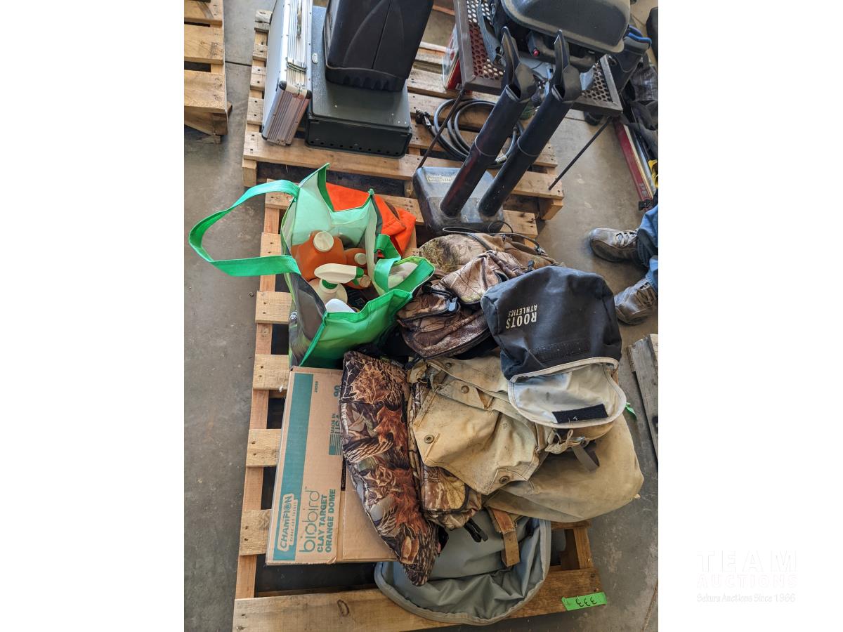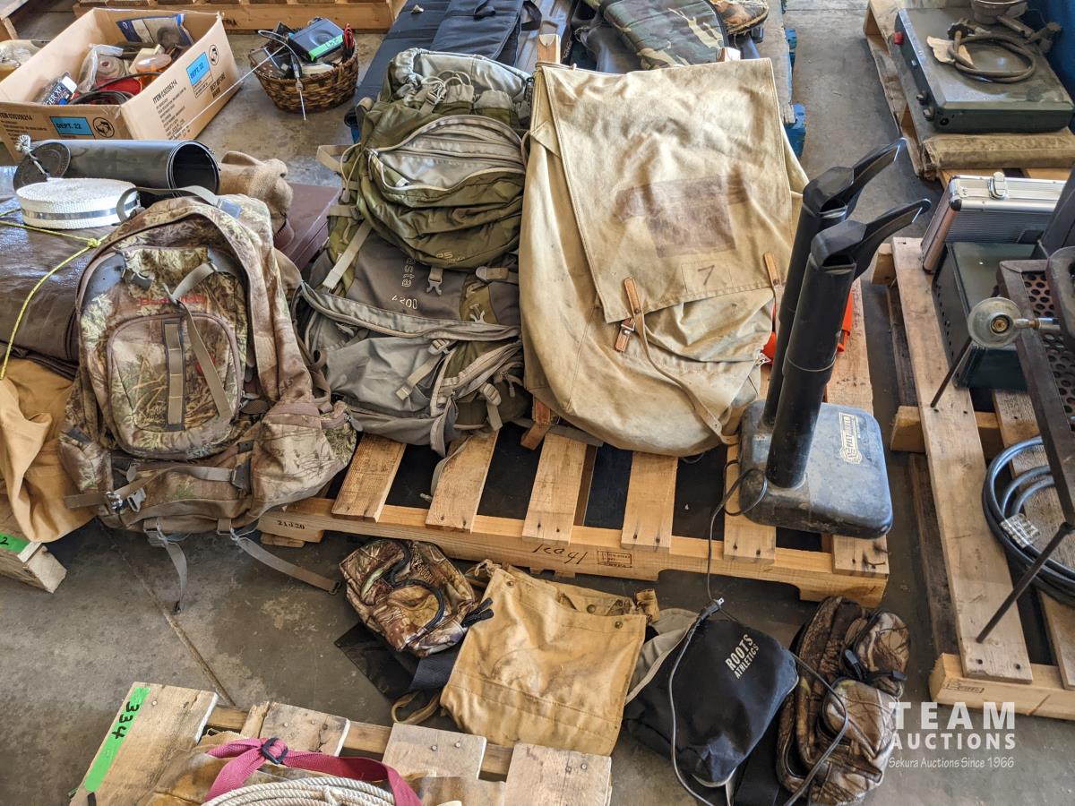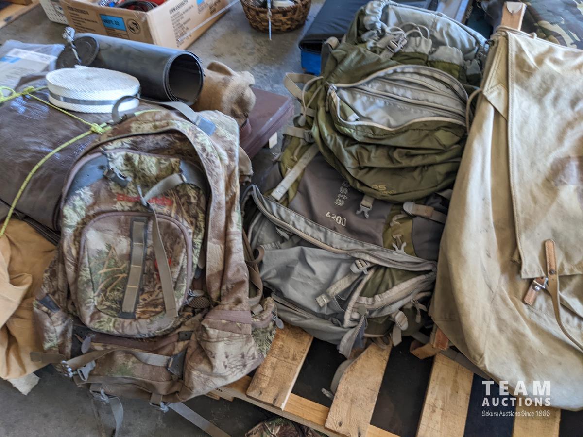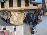 Badlands day pack, Canvas shoulder bag, (2) Camp fanny packs, Fanny pack hand warmer, boot dryer, assorted no scent products