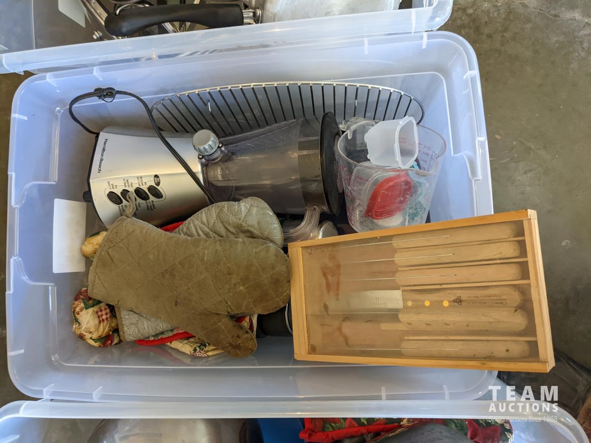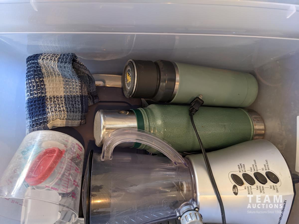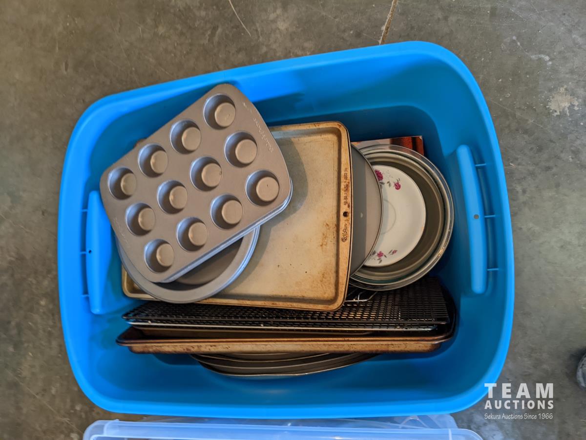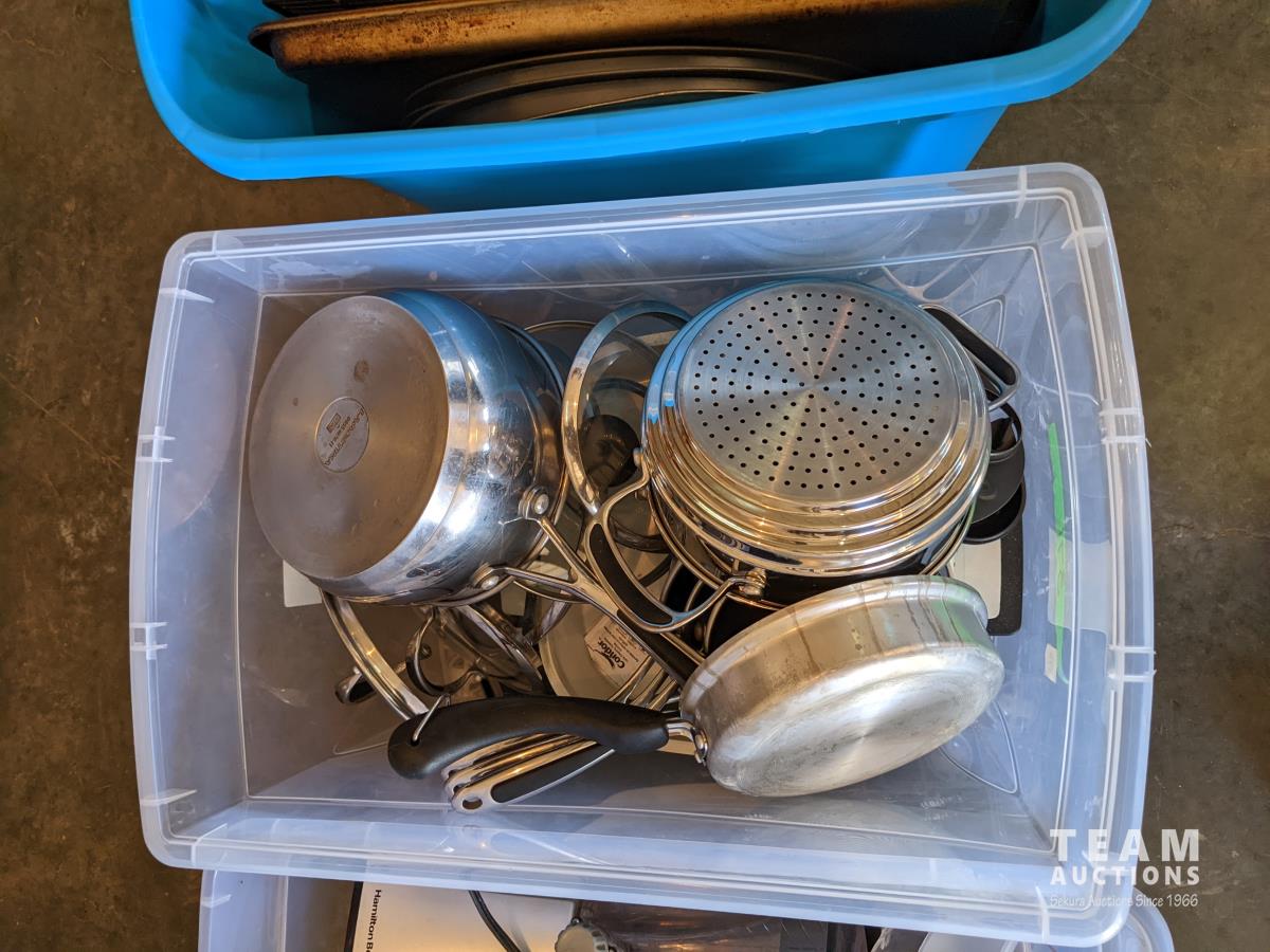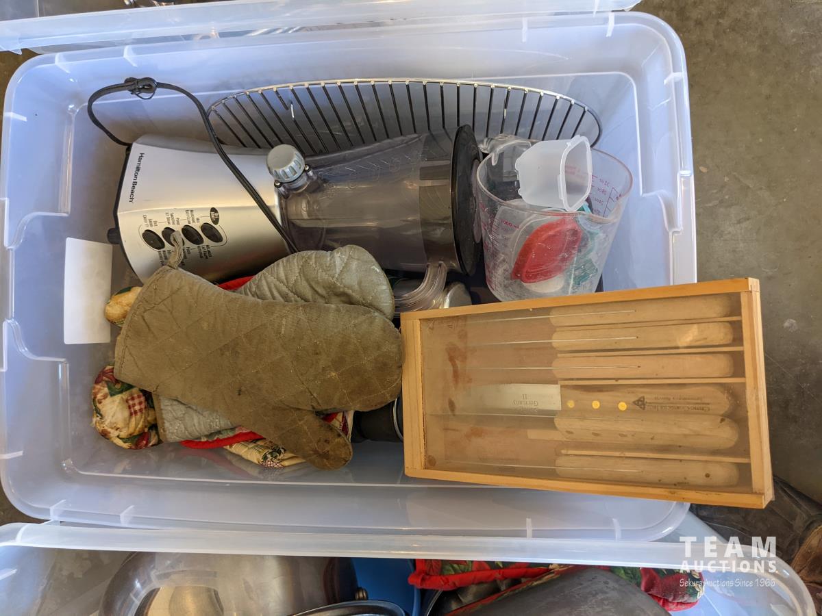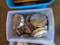 steak knives, pots, pans, blender, cookie sheets, (2) Thermos's, electric grill, casserole dishes, pizza pan