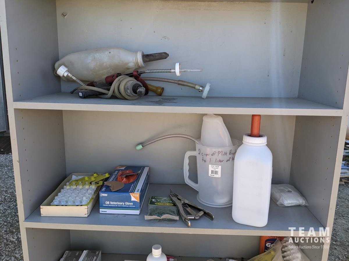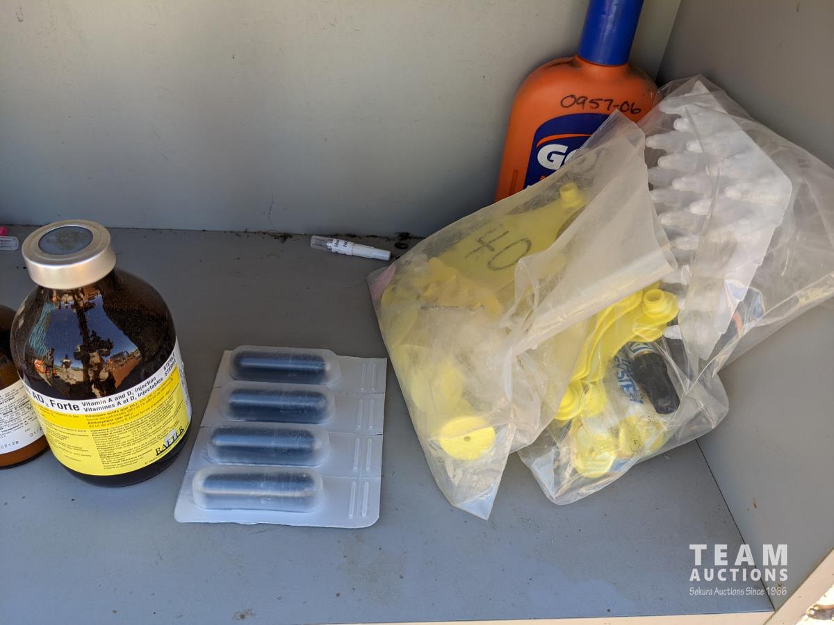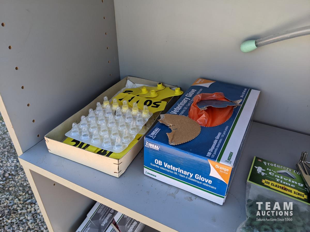 Ear tags, castrating rings, pliers, needles, nursing jugs, qty of various other vet supplies