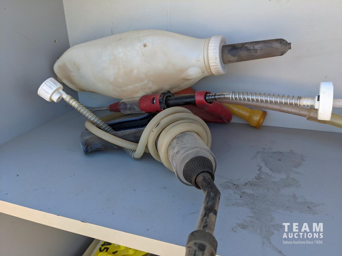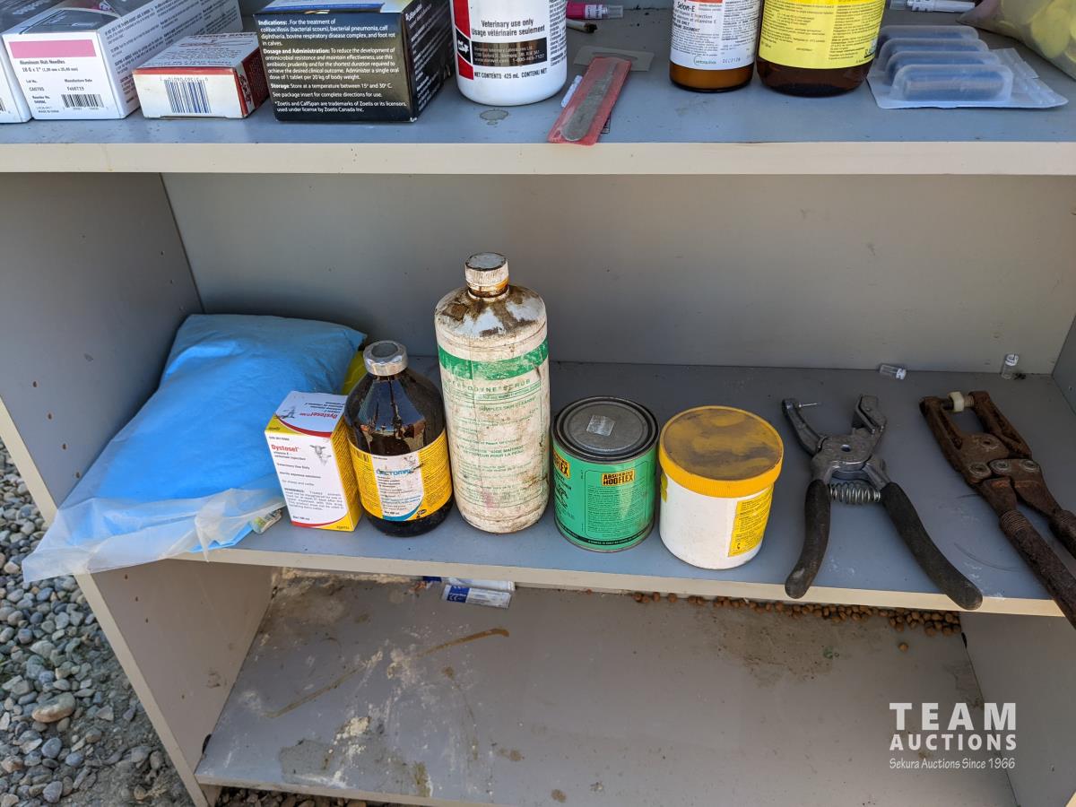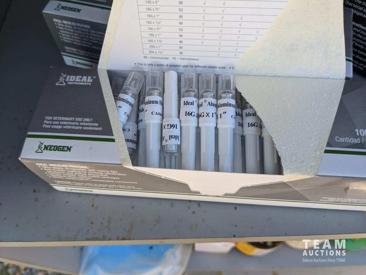 Ear tags, castrating rings, pliers, needles, nursing jugs, qty of various other vet supplies