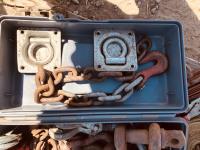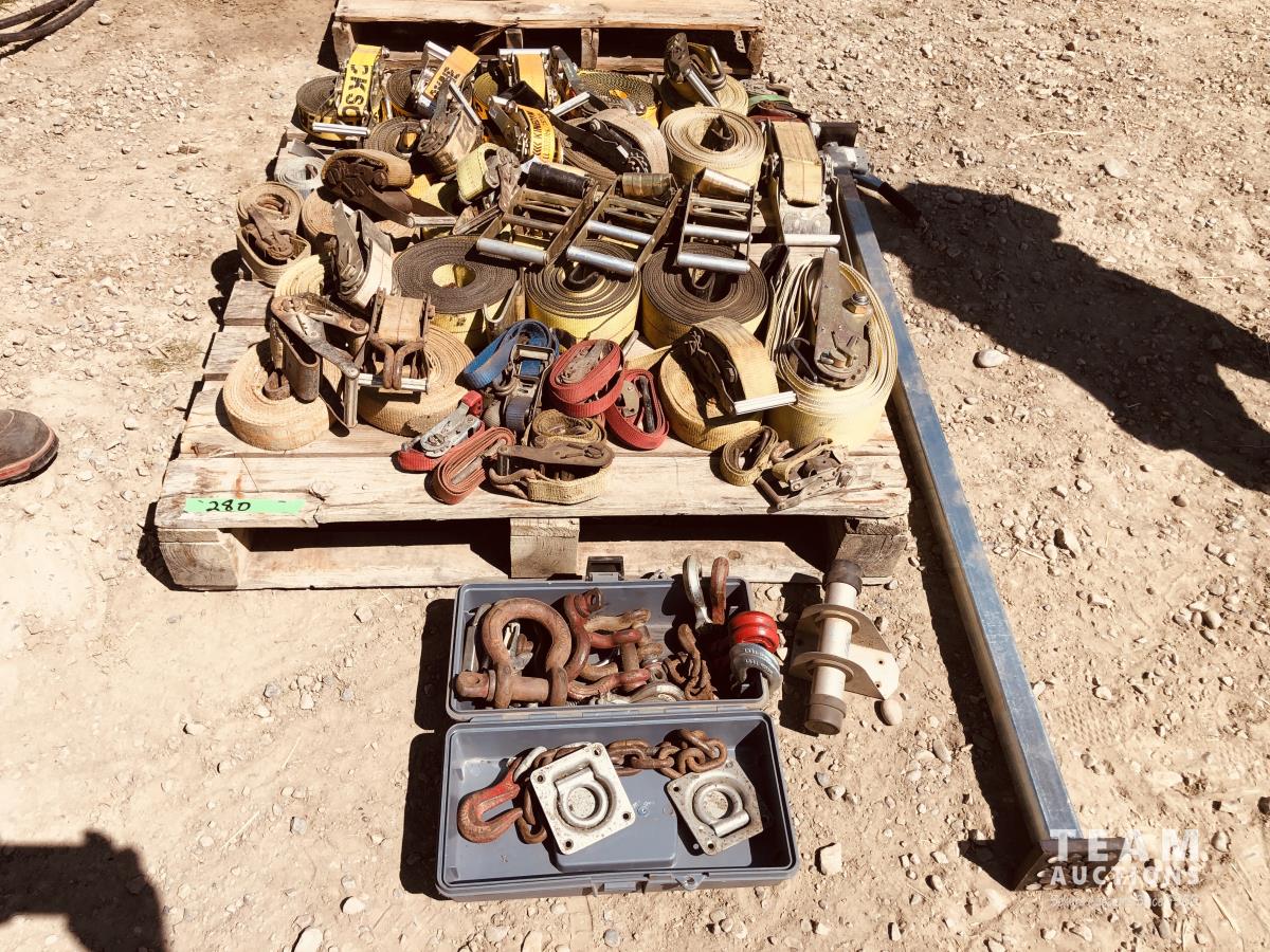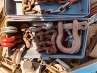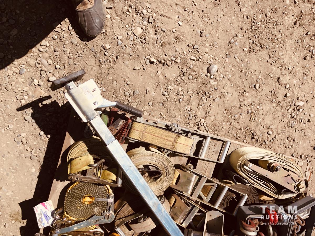 Shackles, ratchet straps, freight jack, document tube, hooks, misc