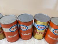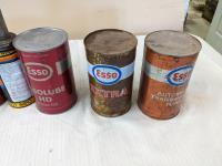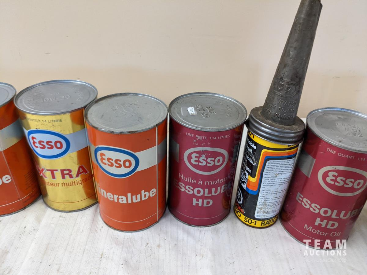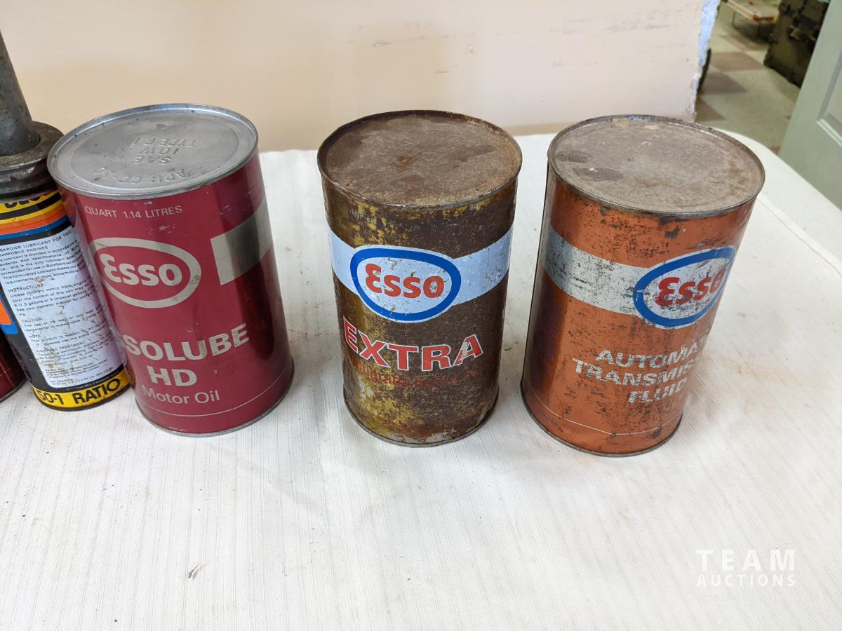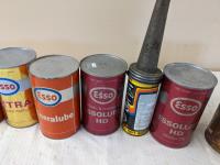 614 (10) Full Esso Oil Cans, Glass Jar Spout & Snowmobile Lube
