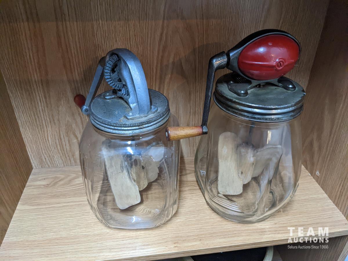 291 (2) Glass Butter Churns