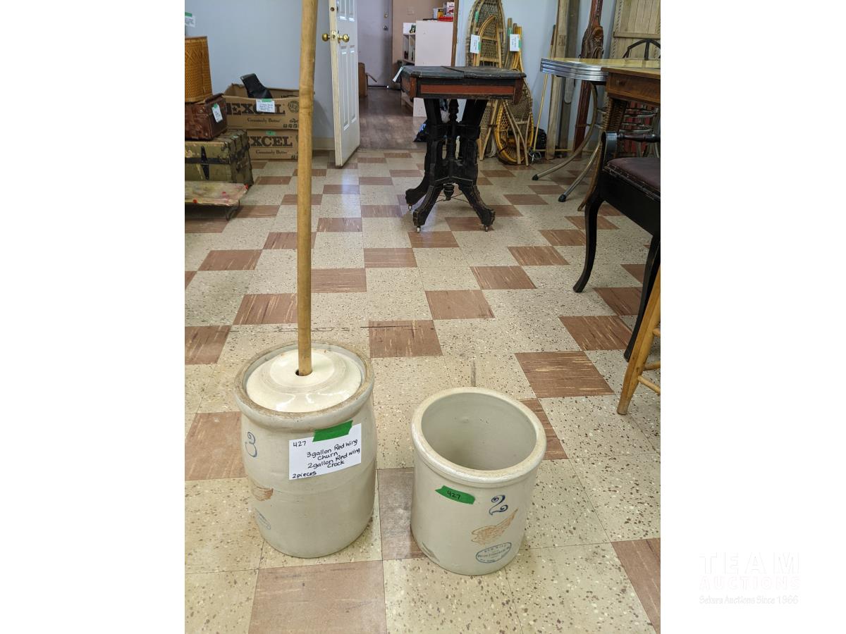 434 (3) Gal Red Wing Butter Churn & (2) Gal Red Wing Butter Churn