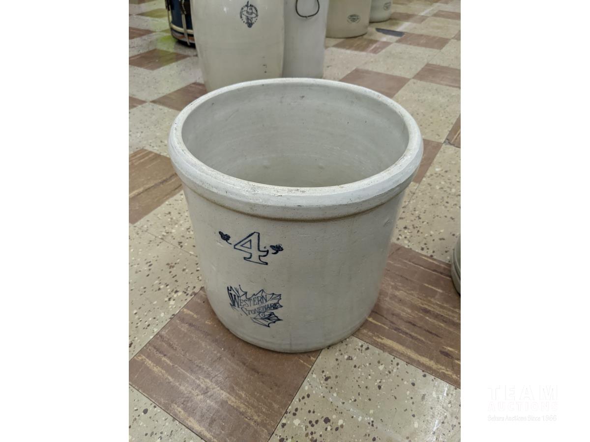 438 4 Gal Western Stoneware Crock & Quebec Merchant Crock