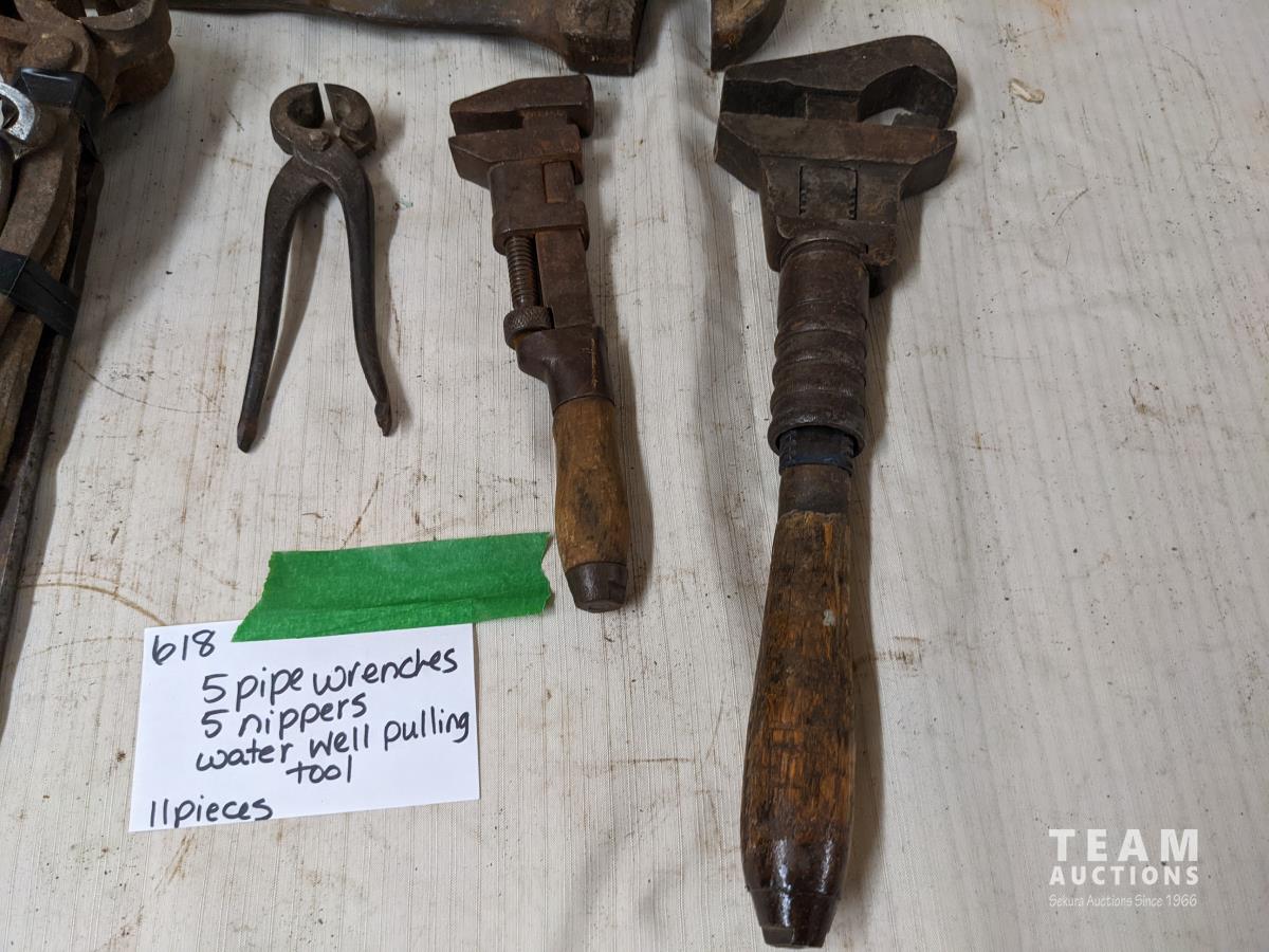 626 (5) Pipe Wrenches, (5) Nippers & Water Well Pulling Tool