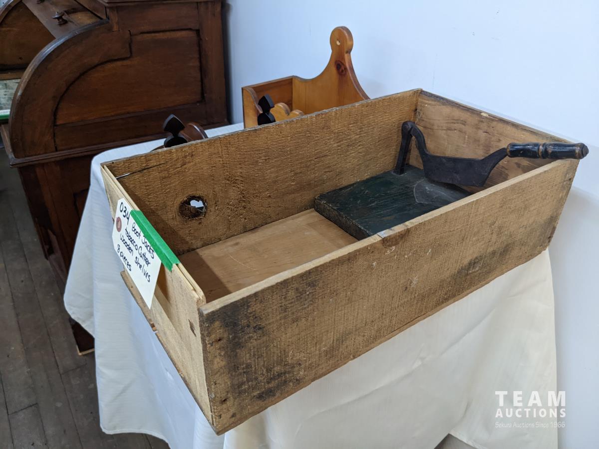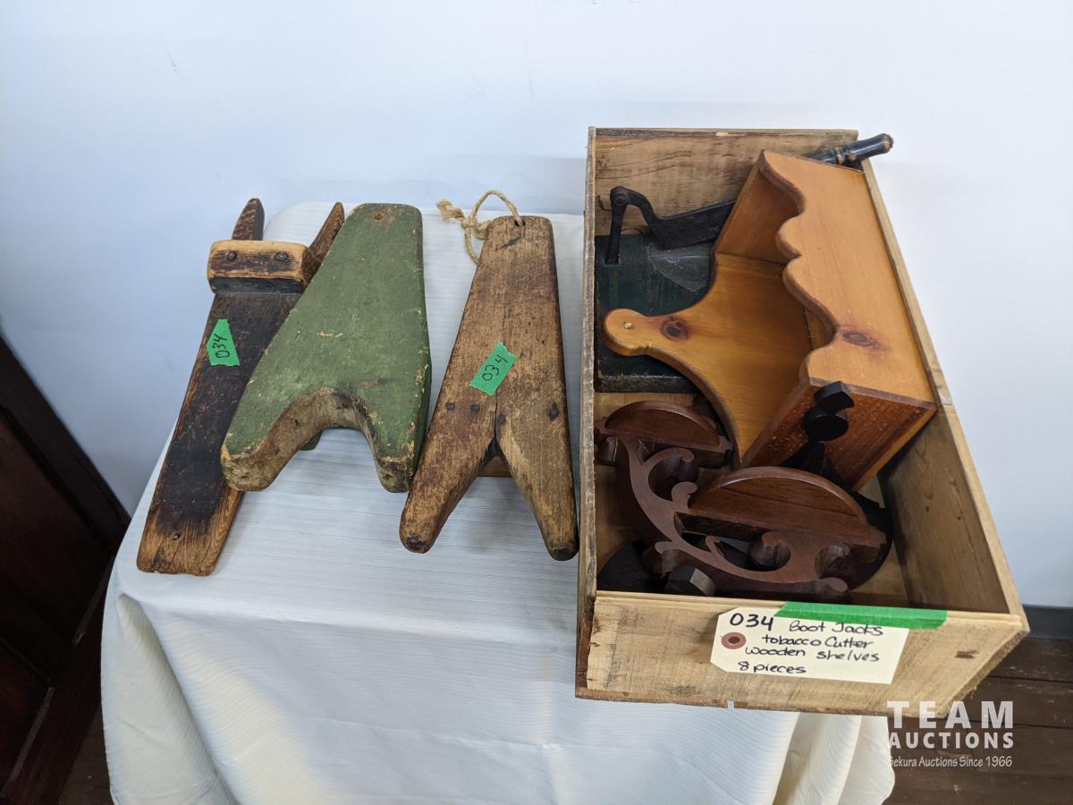 41 Boot Jacks, Tabacco Cutter & Wooden Shelfs