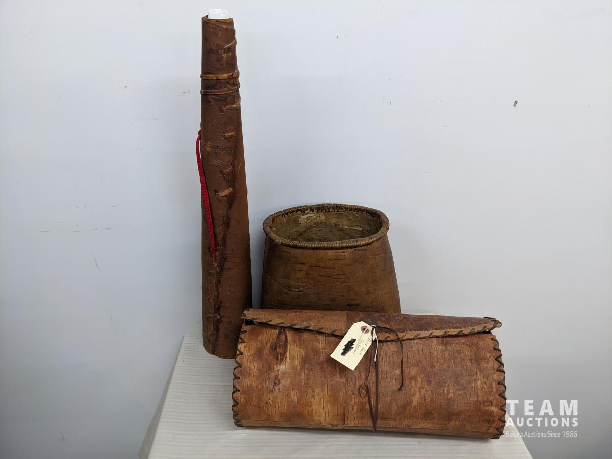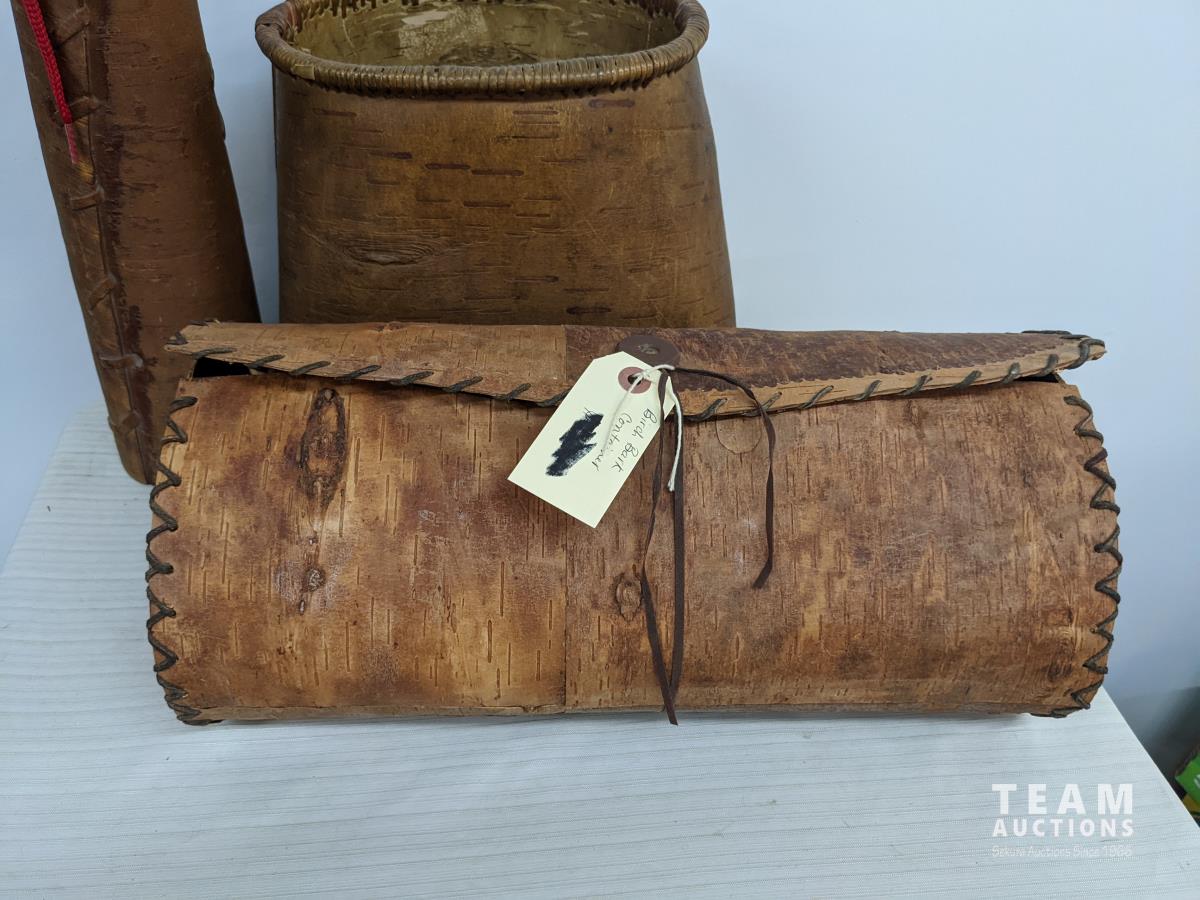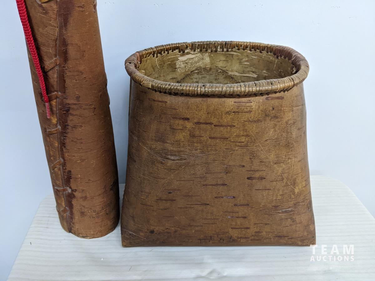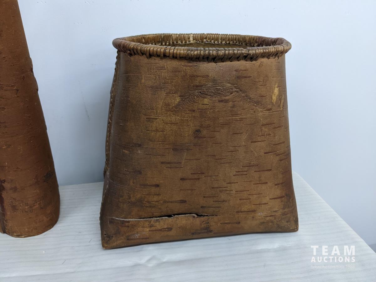 129 Native Birch Bark Moose Call, Basket & Sachel