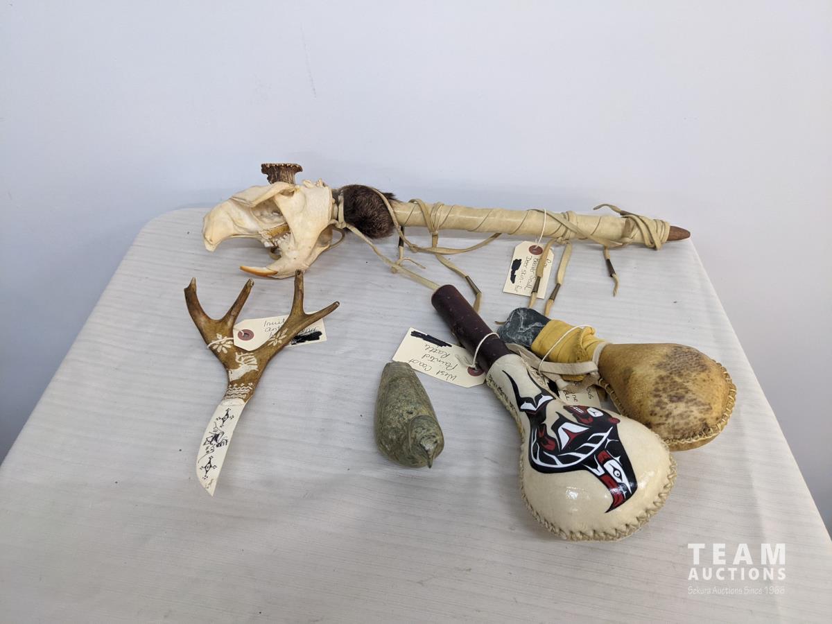 110 Native Rattles, Pipe, Carving & Letter Opener