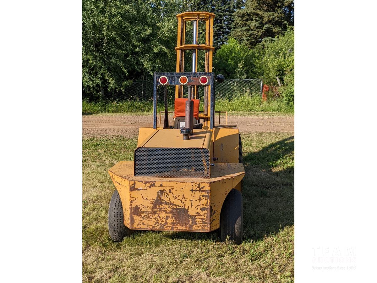 6000 lb cap, 4 Ft forks, John Deere 4 cylinder engine, 8 speed transmission, 16.9-24 front and 11L-16 rear tires