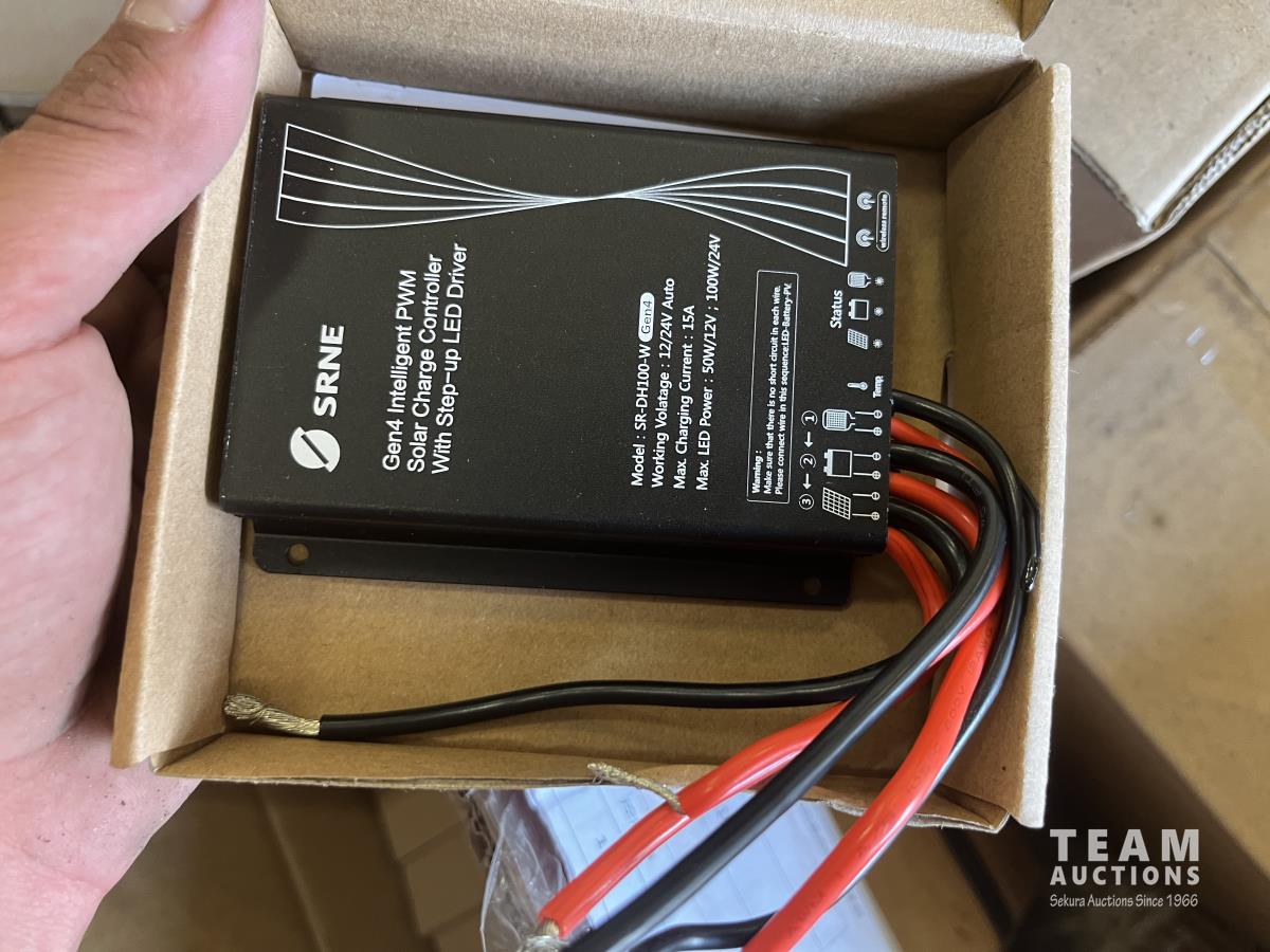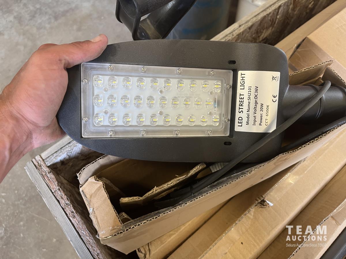 56 (11) LED Solar Lights w/ Poles and Panels (Unused)