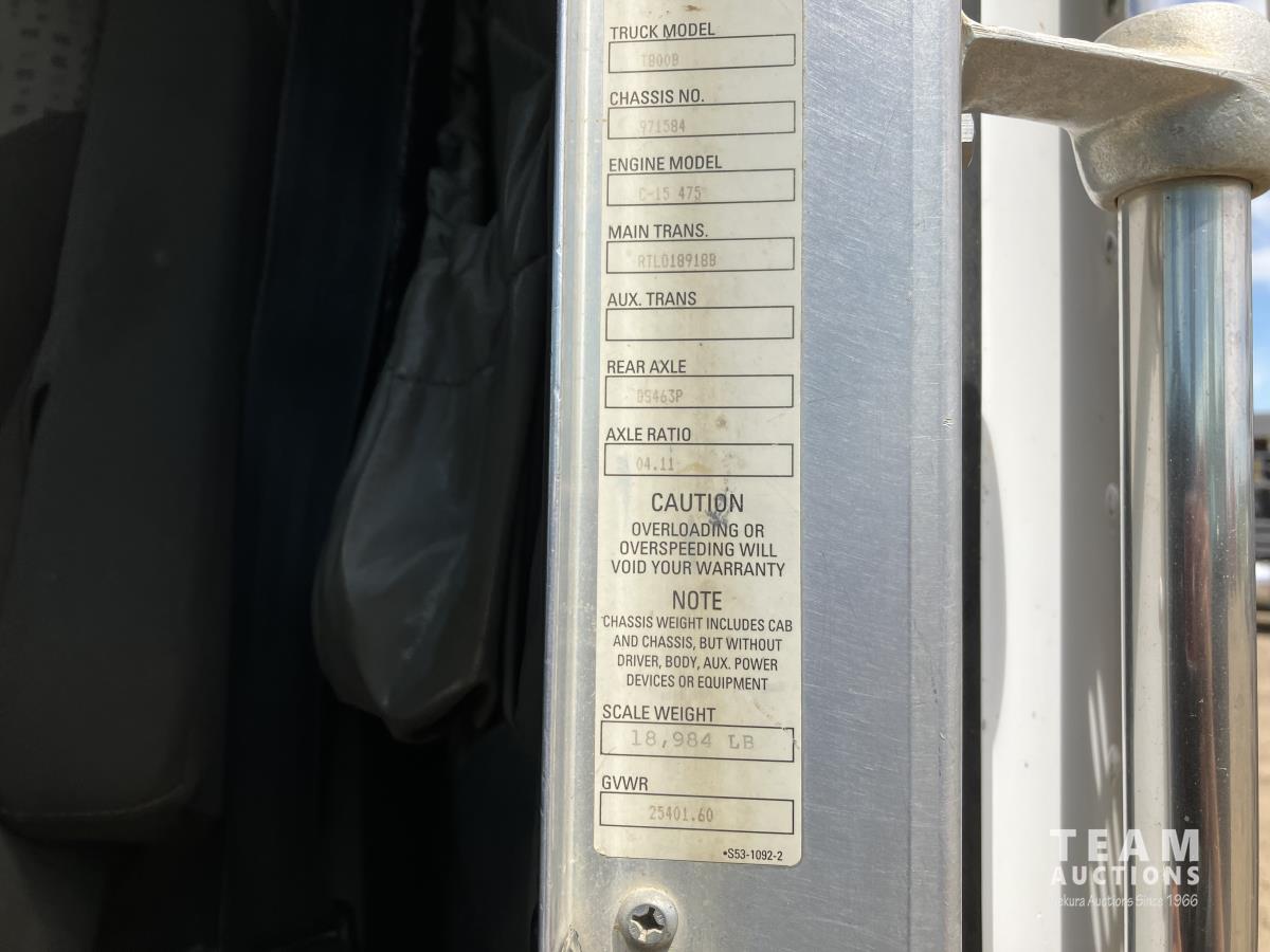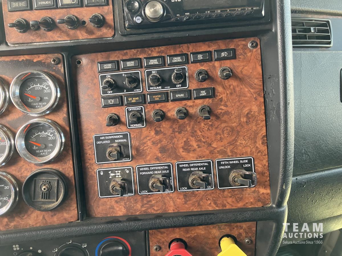 Caterpillar C15, 14.6L, 525 HP, diesel, Eaton Fuller 18 speed transmission, double differential lock, cross lock, 12,000 lb front, 44,000 lb rear, aluminum moose bumper, 50 inch sleeper, hydraulic wet kit, 228 inch wheel base, air ride suspension, aluminum wheels, 11R24.5 tires
