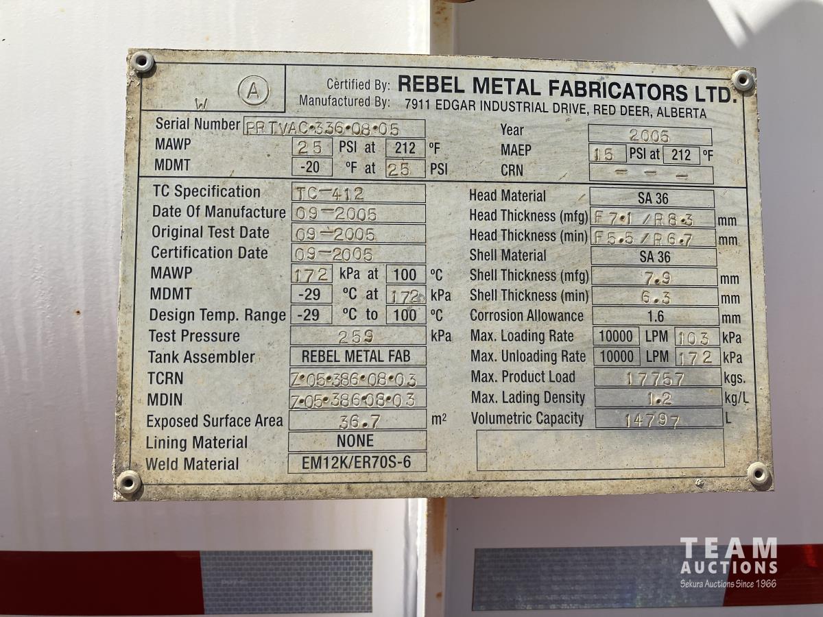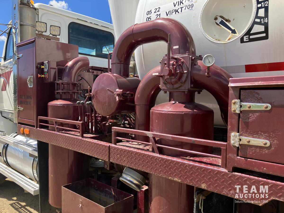 Caterpillar C15, 550 HP, diesel, Eaton Fuller 18 speed, 20,000 lb front, 57,000 lb rear, Rebel Metal Fabricators tank s/n PRTVAC3360805, TC412 spec, vibrator, HiBon 6 inch blower, hoist, full rear hydraulic gate, 262 inch WB, plumbed for pup, air ride suspension, aluminum wheels, 445/65R22.5 front, 11R24.5 rear