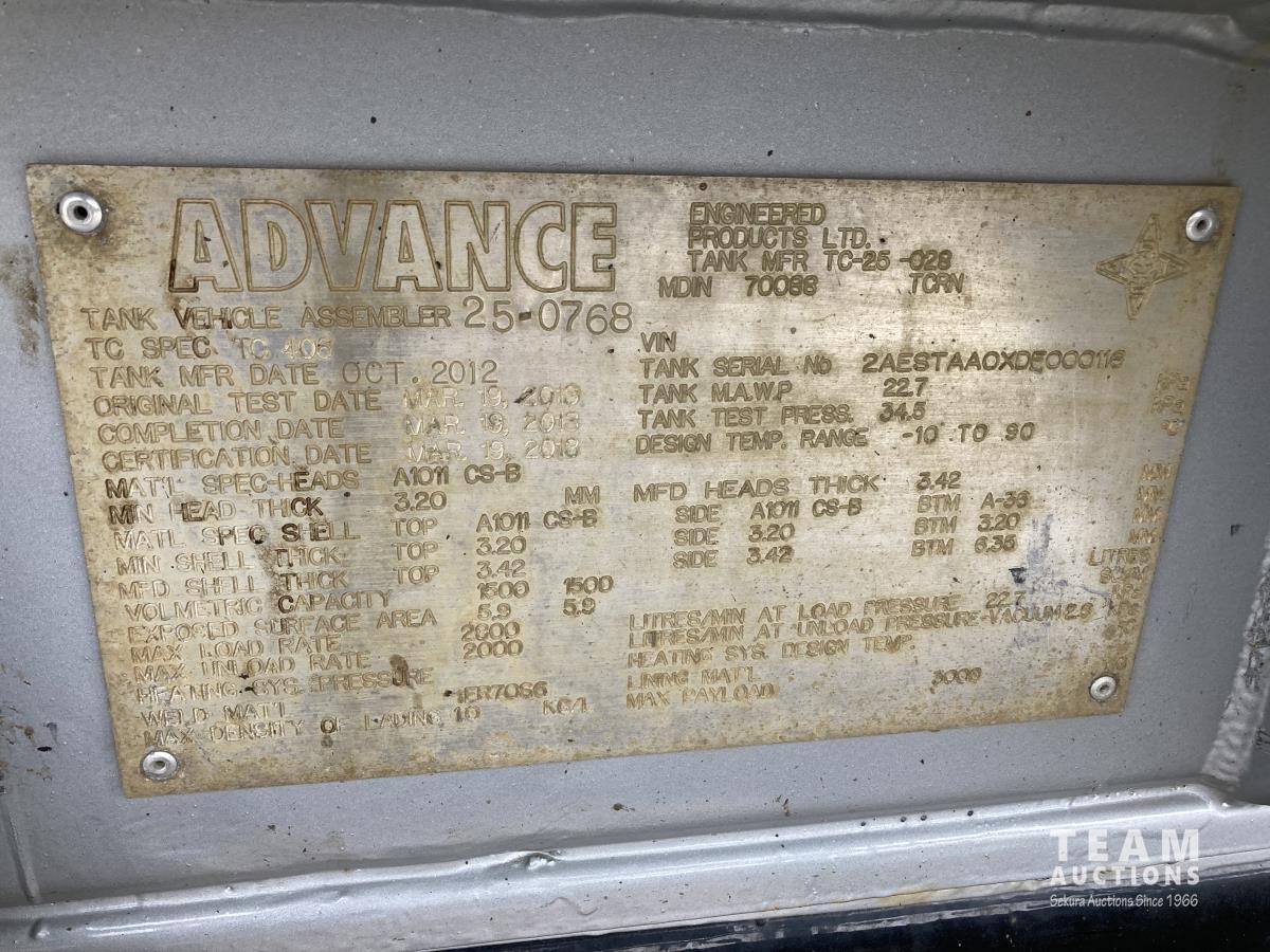 Cummins, 6.7 L, 6 cylinder, 6 speed manual, 2012 Advance 3000 litre 2 compartment TC406 tank, Kerr KB3500 3.5 inch triplex pump, Roper 2 inch pump, external operator controls, hose reel, 225/70R19.5