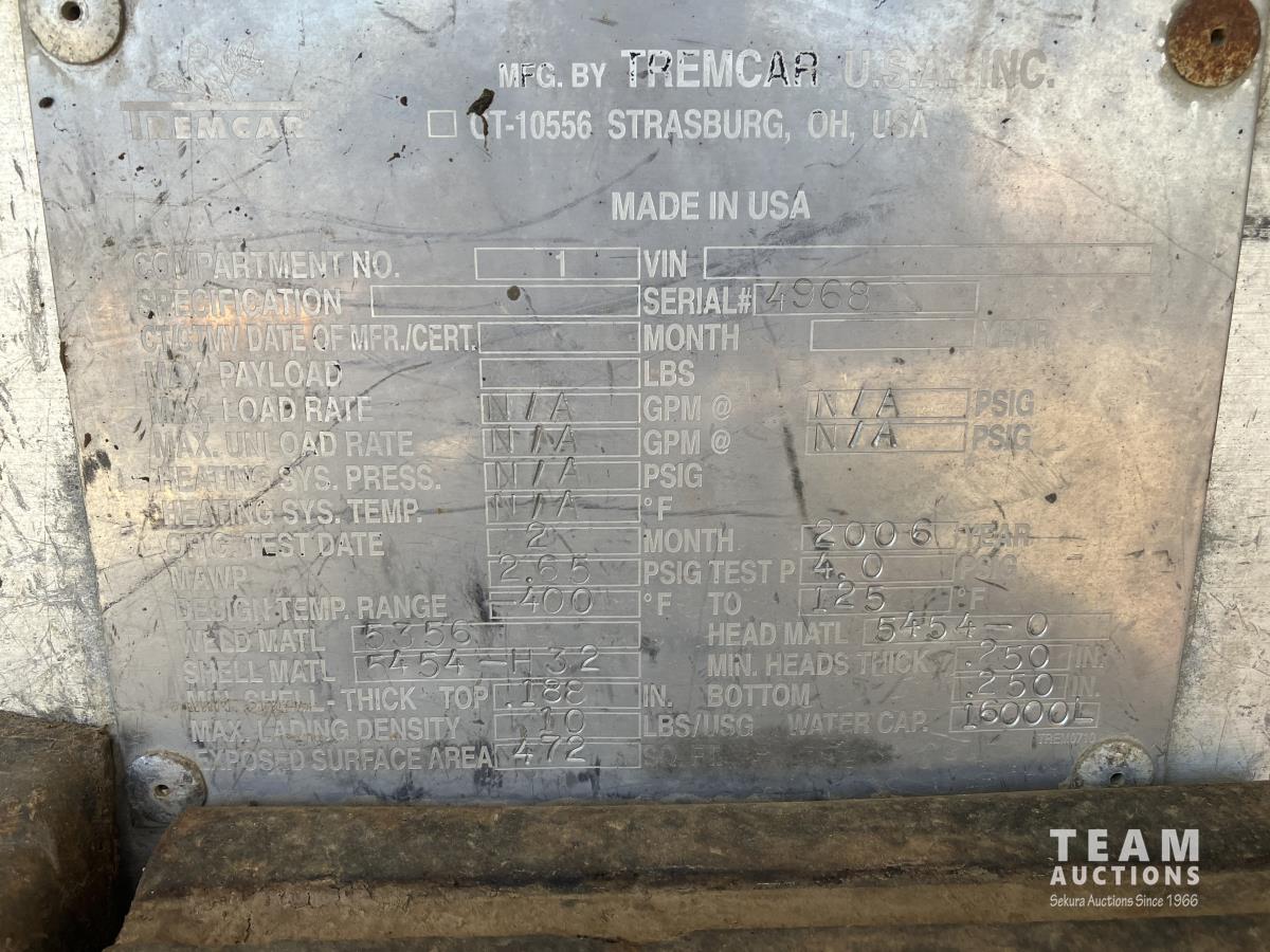 Maxxforce 9 GDT300, 9.3L, 300 HP, diesel, Allison automatic transmission, differential lock, 13,220 lb front, 40,000 lb rear, 2006 Tremcar aluminum tank s/n 4968, Bowie 3 inch hydraulic driven pump, heated cabinet, 228 inch WB, air ride suspension, aluminum wheels, 65R22.5 front, 11R22.5 rear