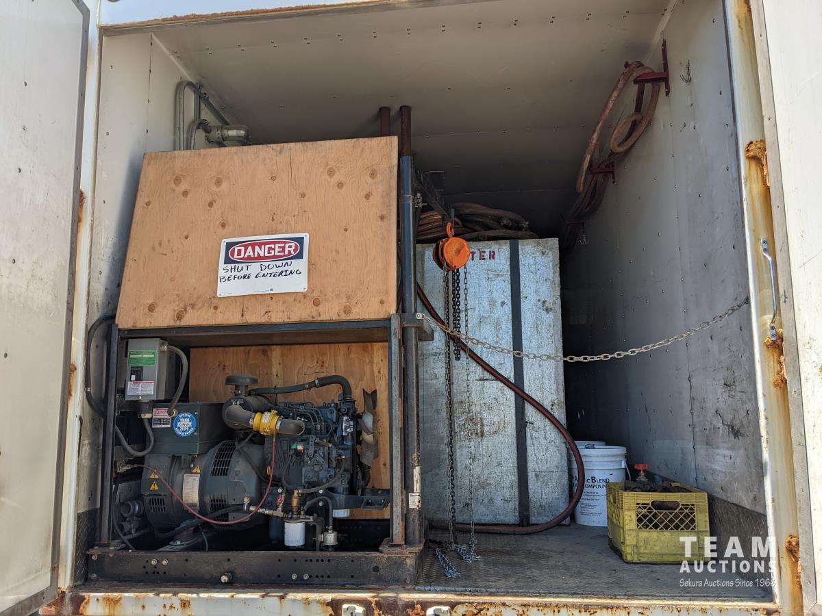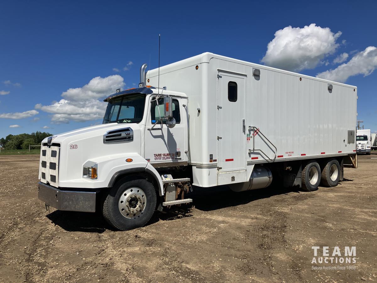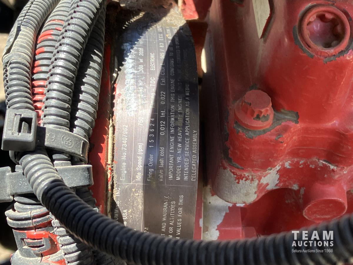 Cummins ISC-300, 8.3L, 300 HP, diesel, Allison automatic transmission, 14,600 lb front, 40,000 lb rear, ITB 26 ft box s/n 15741, Saskatoon 40 HP boiler s/n 724027, 4000 L galvanized water tank, Stanford 9.1 kW generator, Kubota 3 cylinder diesel, 240V 1 ph, 312 inch WB, air ride suspension, aluminum wheels, 315/80R22.5 front, 11R22.5 rear, ABSA Boiler Inspection completed 07/2022