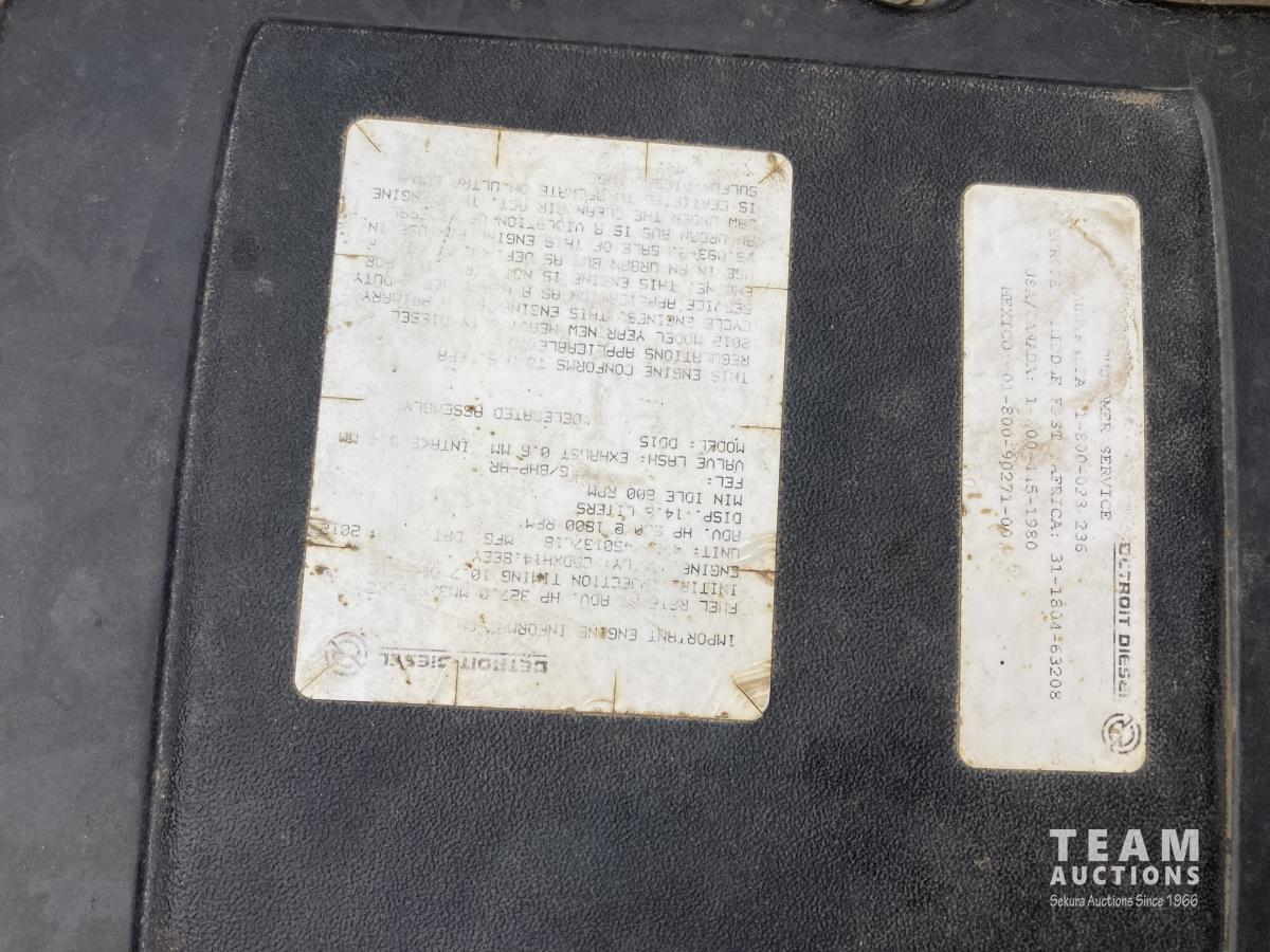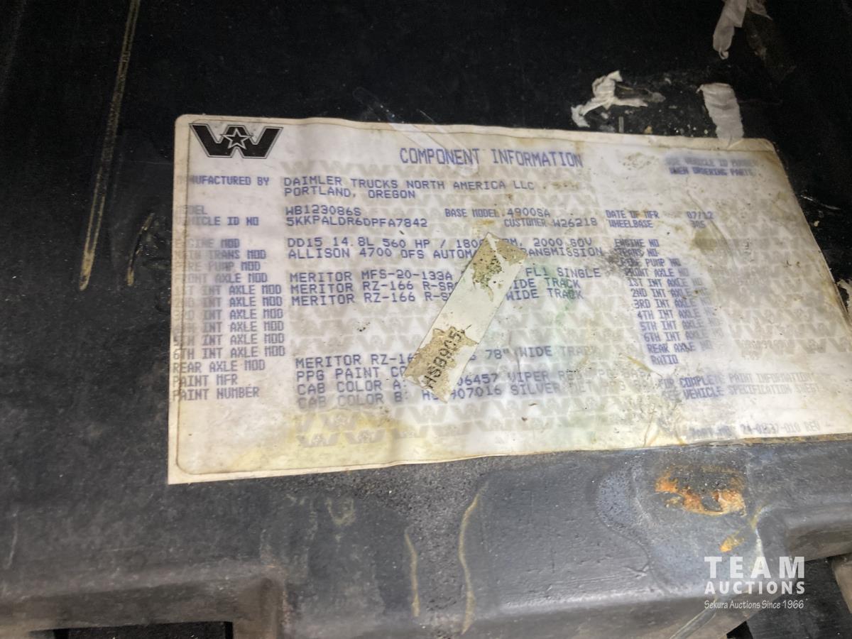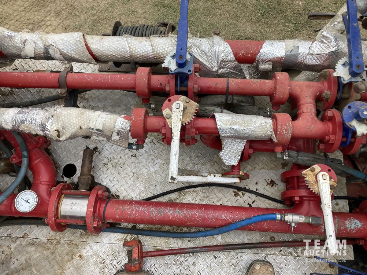 Detroit DD15, 14.8 L, 560 HP, diesel, engine brake, Allison 4700 OFS automatic transmission, Webasto heater, Meritor MFS20133A 20000 lb front, Meritor RZ166RSRS 66000 lb rears, 4.89 ratio, 305 WB, airliner air ride suspension, IMEX rig up, 2013 Hamm 9450 litre 3 compartment TC412/406 Tank, 2013 CW Manufacturing burner, 2013 ITB operator station w/controls & gauges, Weir SPM TWS600S 3.5 inch 10000 PSI triplex pump, Durco Mark3 3X2 centrifugal pump, 3 inch T&E pump, Mobiled Tatech computer, hose reel, aluminum wheels, 36 inch sleeper, 445/65R22.5 front, 11R24.5 rear