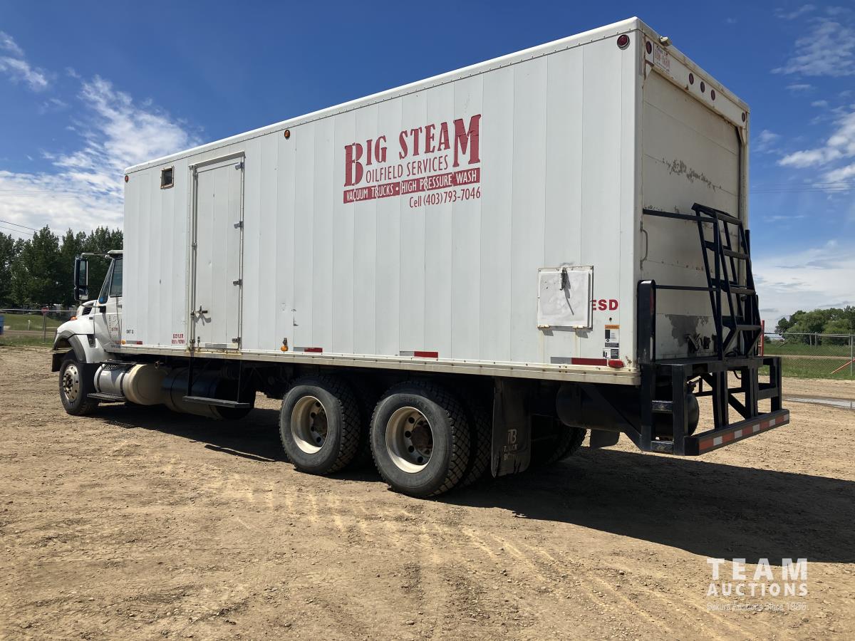 Maxxforce, 300 HP, Allison automatic transmission, differential lock, 14,000 lb front, 40,000 lb rear, 258 inch WB, 25 ft ITB box s/n ITB0211659, Saskatoon 25 HP Boiler s/n 230697, 4000 litre galvanized tank, Water Blast WB301-12 hot water pressure washer, Cat triplex pump, Newage 10 kW generator, Kubota 4 cylinder diesel, 240/120V 1 ph, air ride suspension, aluminum wheels, 315/30R22.5 front, 11R22.5 rear