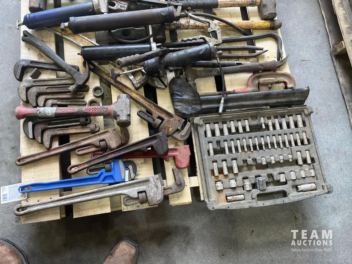 Grease guns, pipe wrenches, hammers