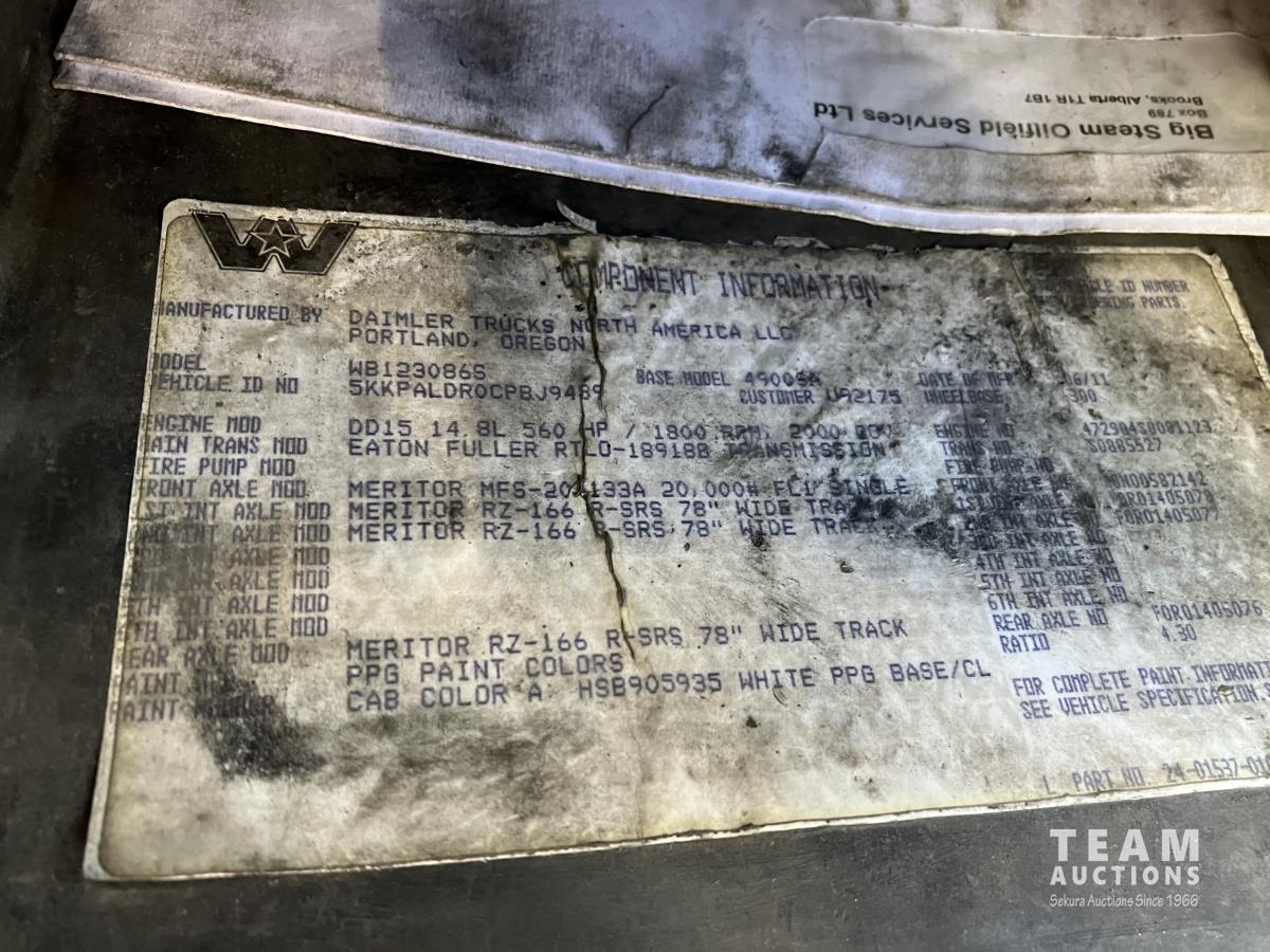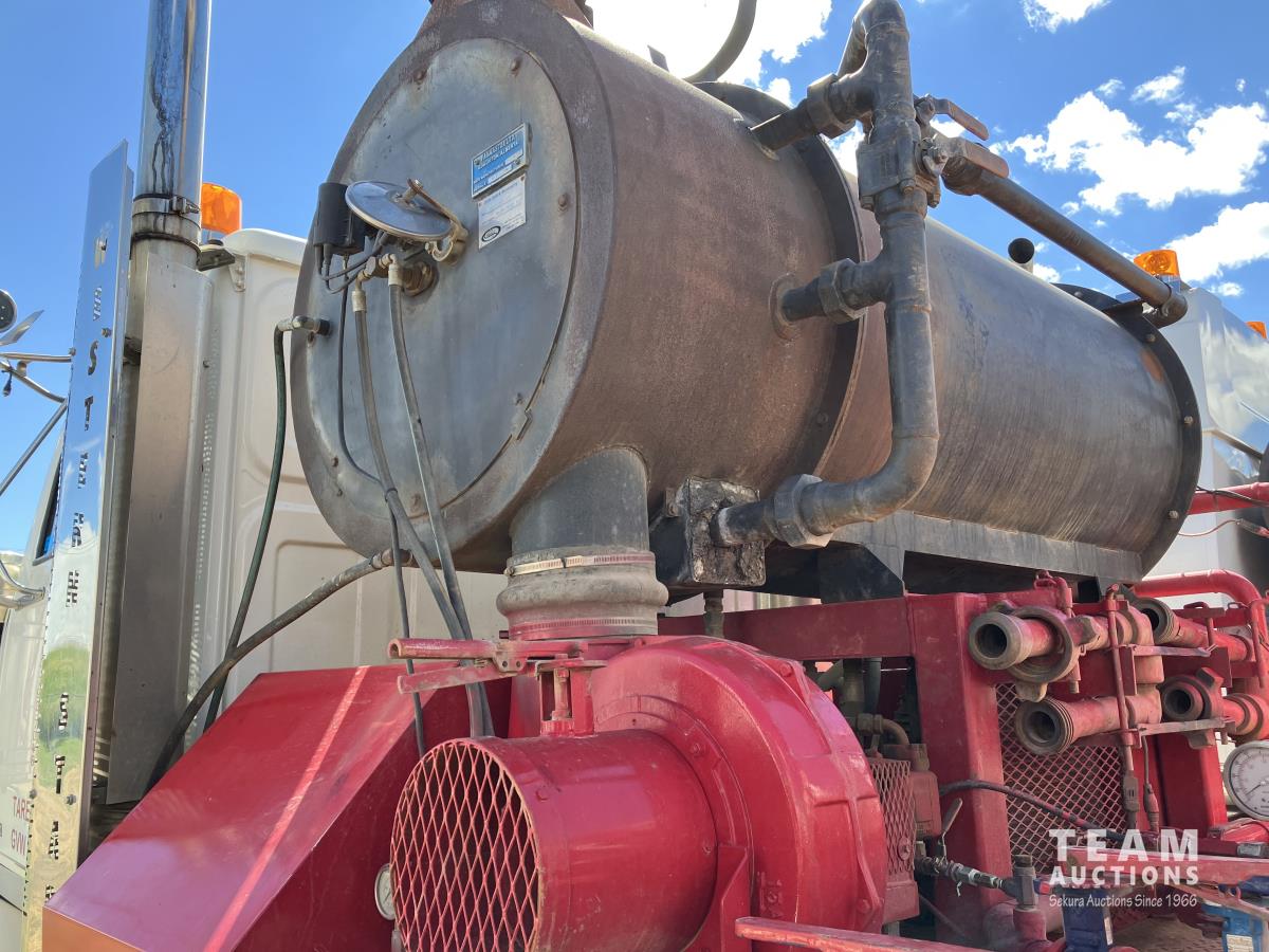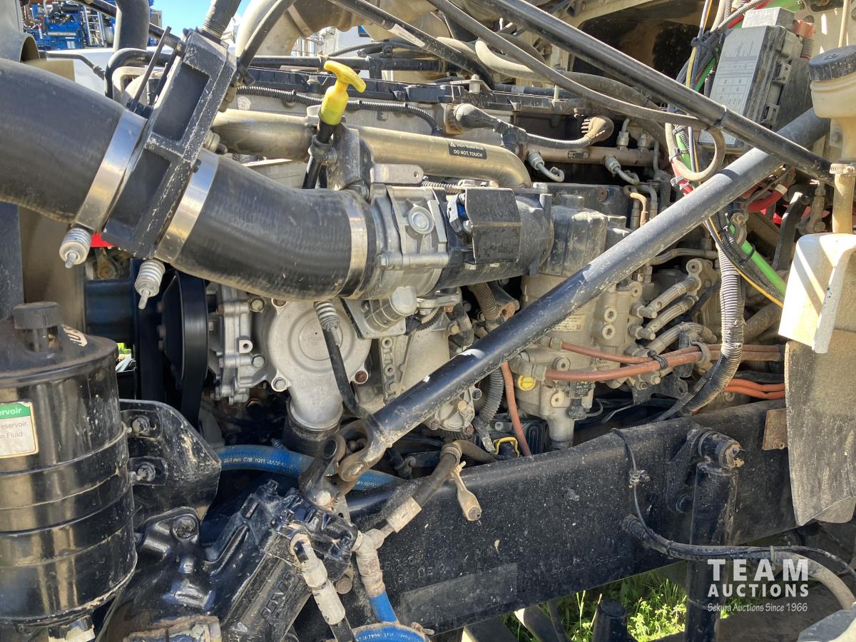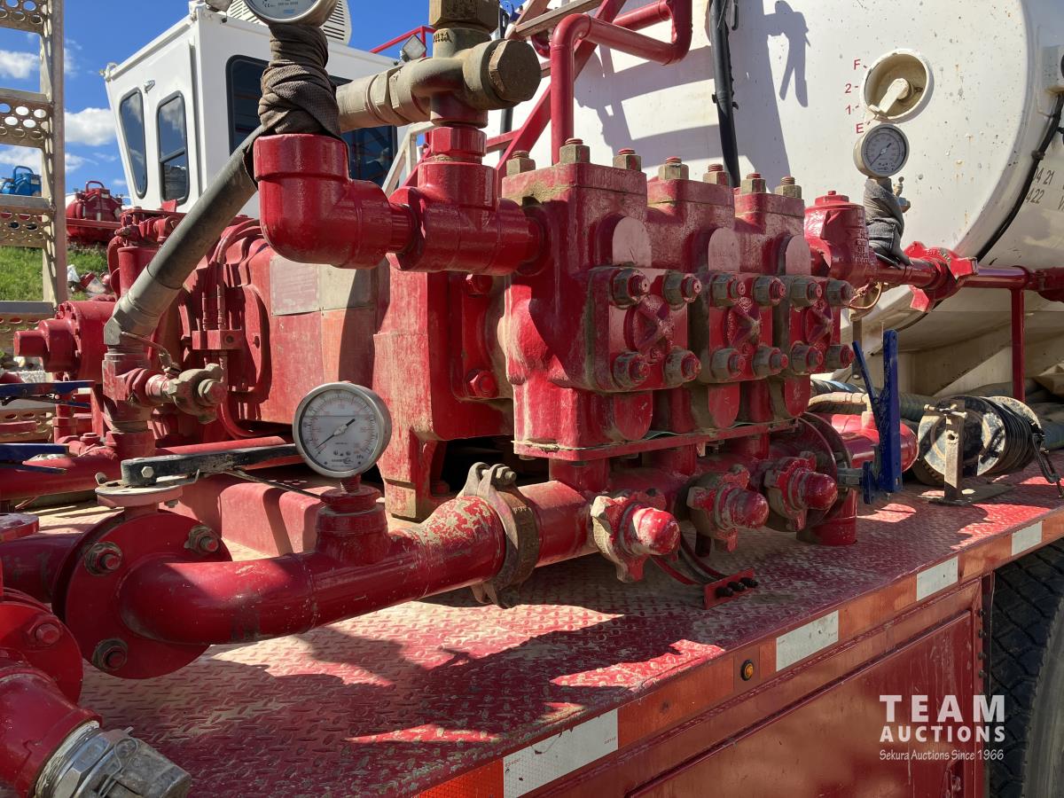 Detroit DD15, 560 HP, diesel, Eaton Fuller 18 speed, double differential lock w/ cross lock, 20,000 lb front, 53,700 lb rear, 300 inch WB, double frame, TCB rig up, Fabmaster burner, 2011 Hamms 3 compartment 10,585 litre tank, Gardner Denver TEEF 3 inch triplex pump, Durco Mark 3 3X2 centrifugal pump, Panasonic CF-53 computer, external operator station w/ controls & gauges, air ride suspension, aluminum wheels, 445/65R22.5 front, 11R24.5 rear