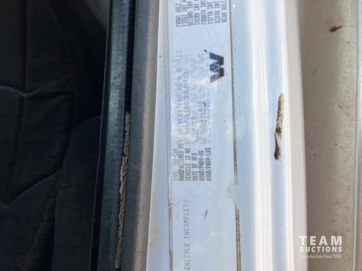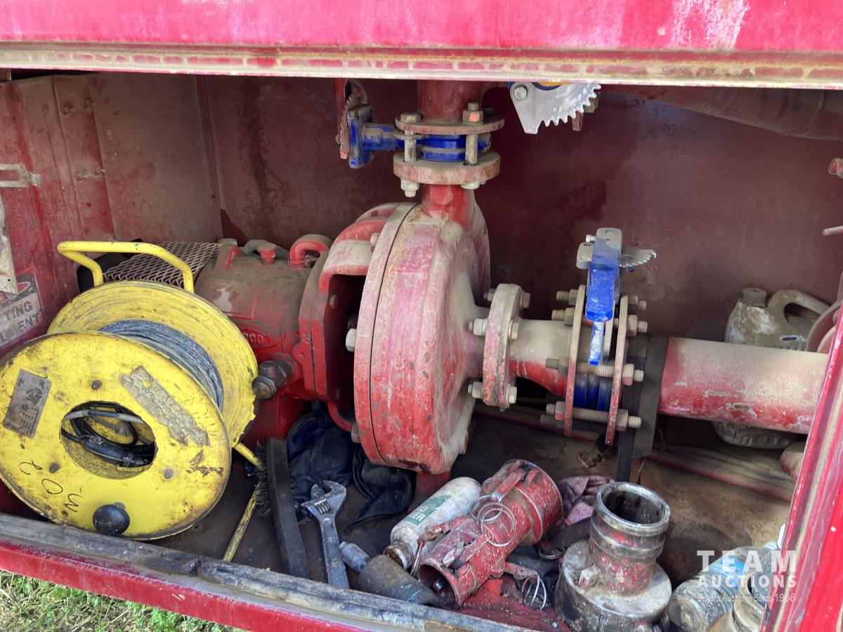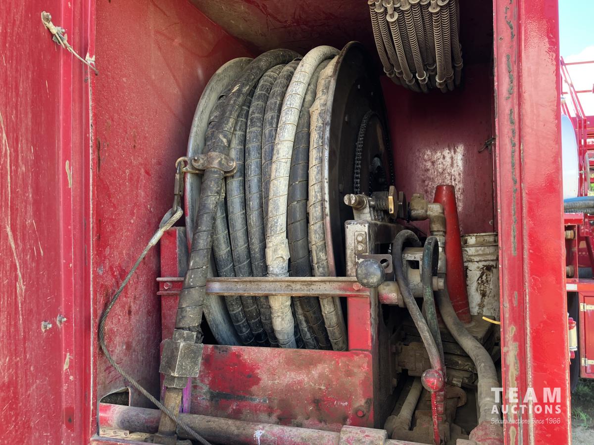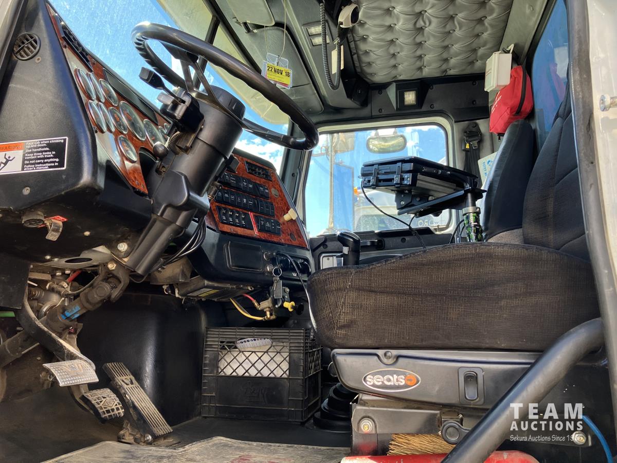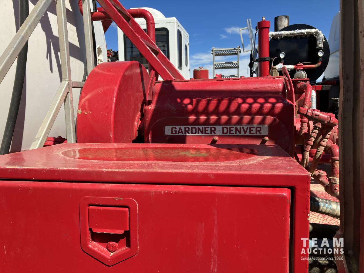 Detroit DD15, 560 HP, diesel, Eaton Fuller 18 speed, double differential lock w/ cross lock, 20,000 lb front, 53,700 lb rear, 300 inch WB, double frame, TCB rig up, Fabmaster burner, 2011 Hamms 3 compartment 10,585 litre tank, Gardner Denver TEEF 3 inch triplex pump, Durco Mark 3 3X2 centrifugal pump, Panasonic CF-53 computer, external operator station w/ controls & gauges, air ride suspension, aluminum wheels, 445/65R22.5 front, 11R24.5 rear