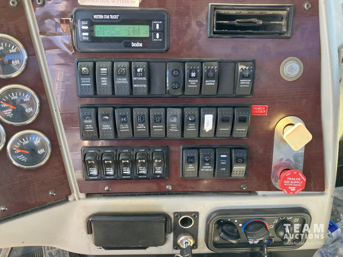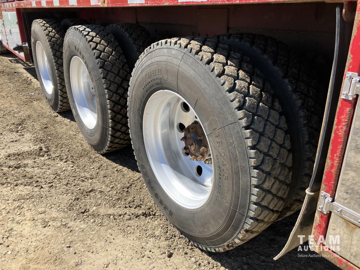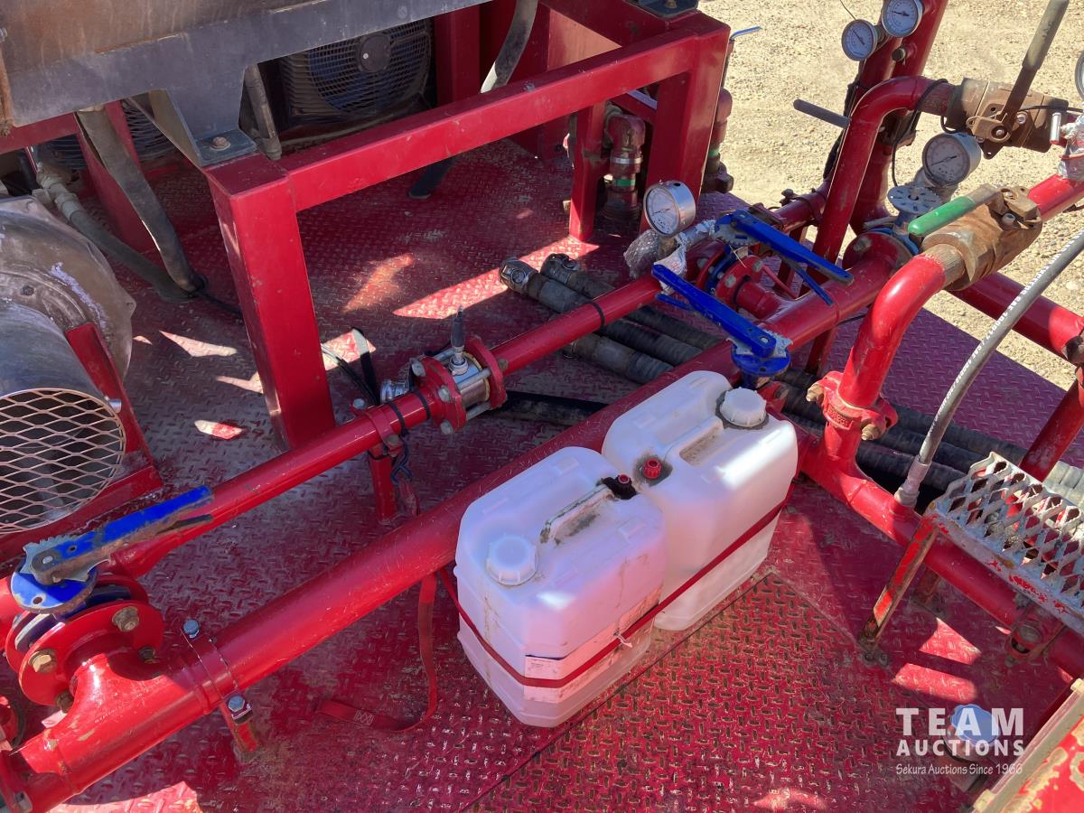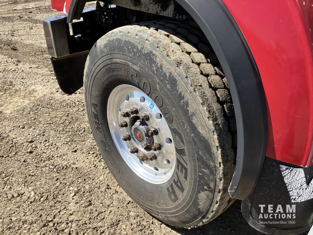 Detroit DD15, 14.8 560 HP diesel, Eaton Fuller 18 speed, triple differential lock w/ cross lock, 20,000 lb front, 53,250 lb rear, 300 inch WB, double frame, TCB rig up, Fabmaster burner, 2012 Hamms 10,350 litre 3 compartment tank, TC412 spec, Gardner Denver TEEF 3 inch triplex pump, Durco Mark 3 3X@ centrifugal pump, Panasonic CF-53 computer, external operator staion w/ controls & gauges, air ride suspension, aluminum wheels, 445/65R22.5 front, 11R24.5 rear