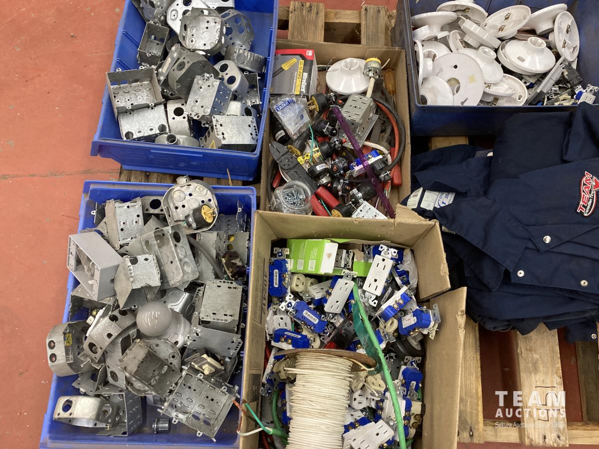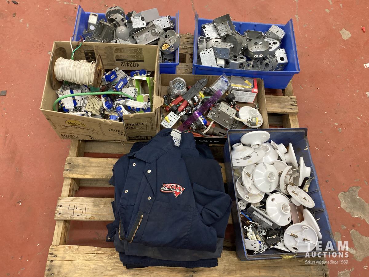 450 Miscellaneous Electrical Supplies & (6) Pairs Assorted Coveralls