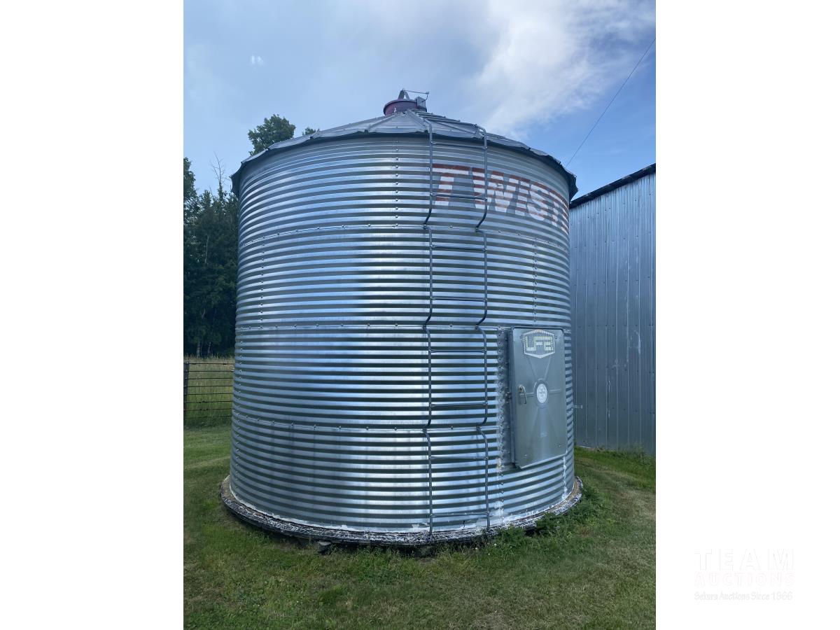 1600± bu cap, comes with approximately 1/3 barley, wood floor, ladder, opener