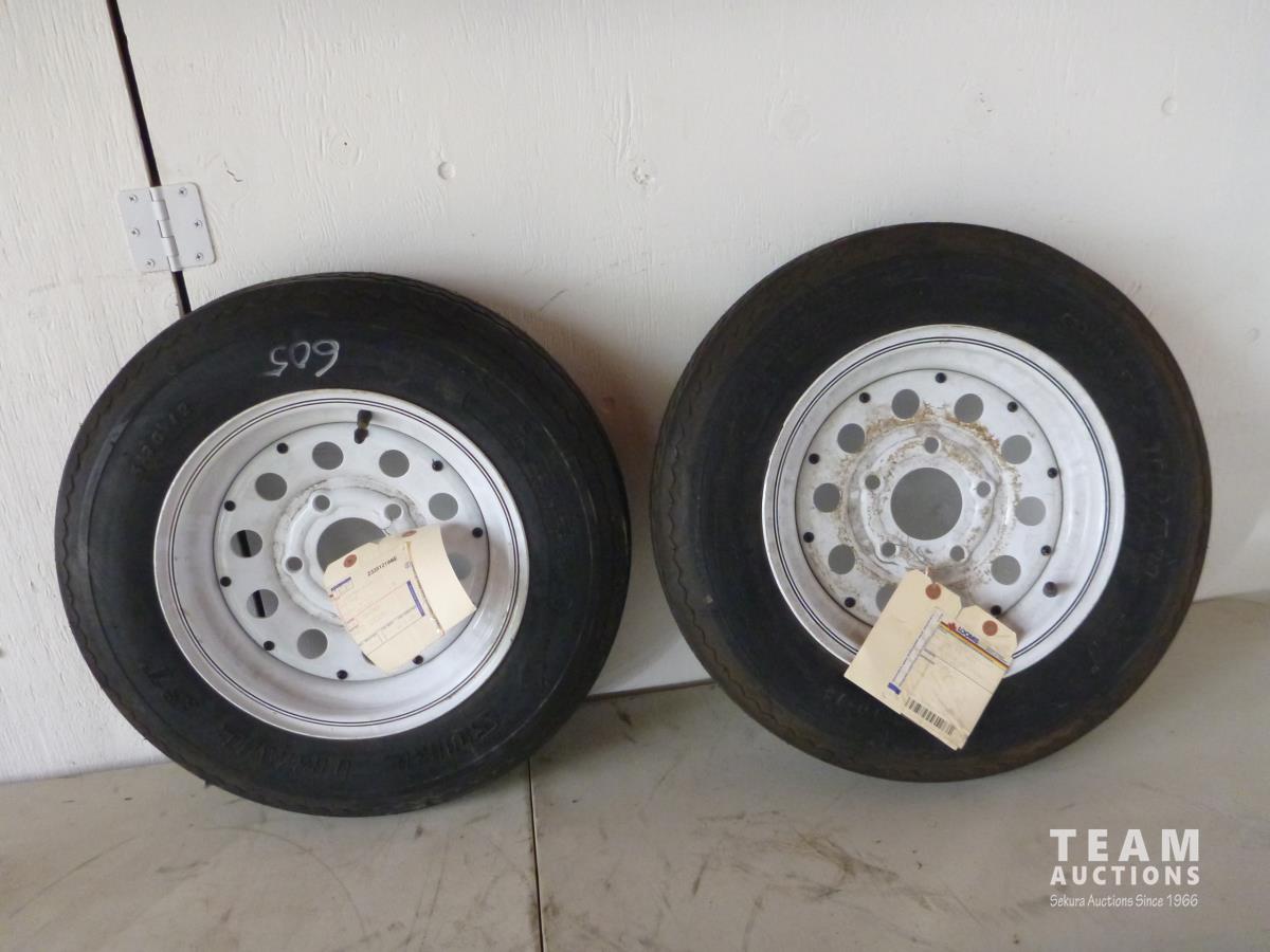 555 (2) Sure Trail 5.30-12 Trailer Tires On 5 Bolt Rims (Unused)