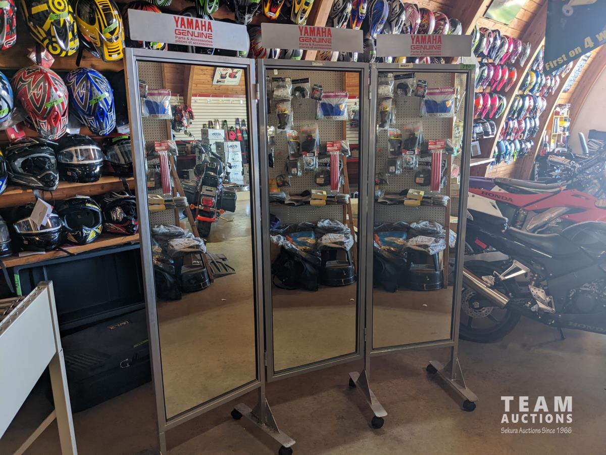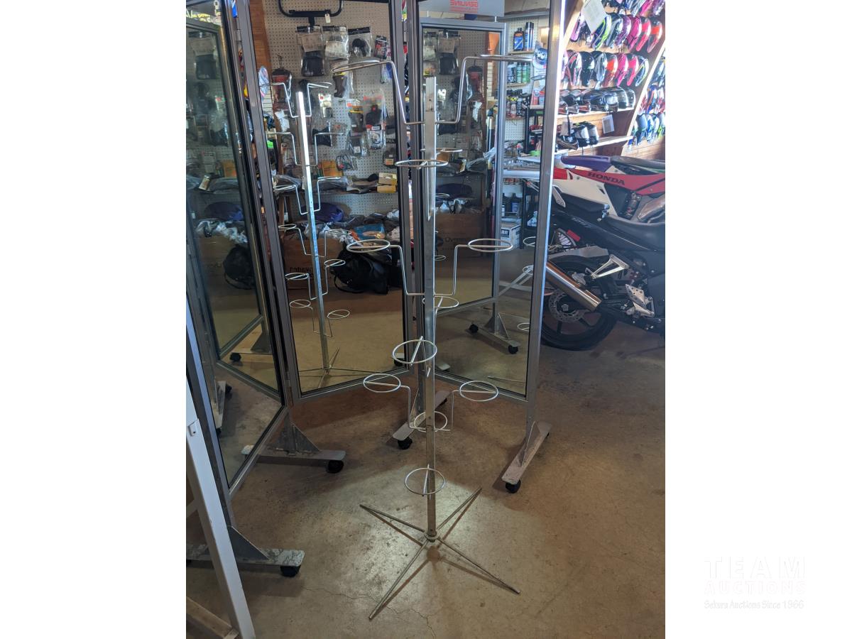 634 (3) Piece Change Room Mirror On Casters & Wire Helmet Rack