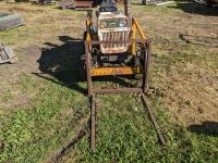 Onan twin cylinder gas engine, hydro transmission, Johnson Work Horse loader, pallet forks, 4 ft bucket, 3 ft rototiller
