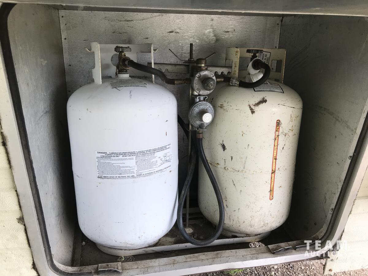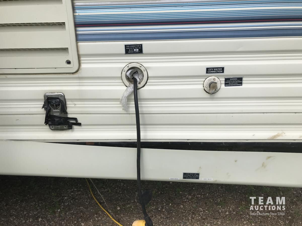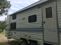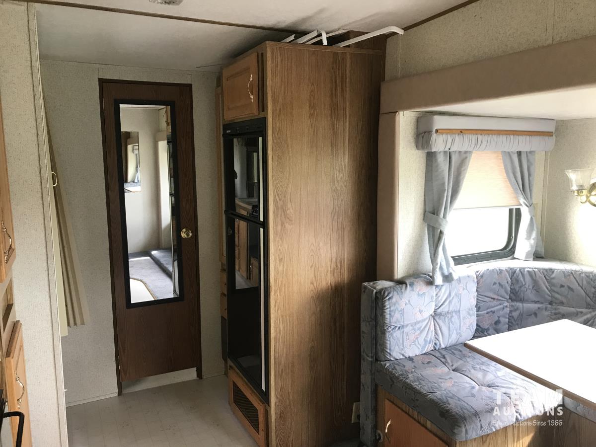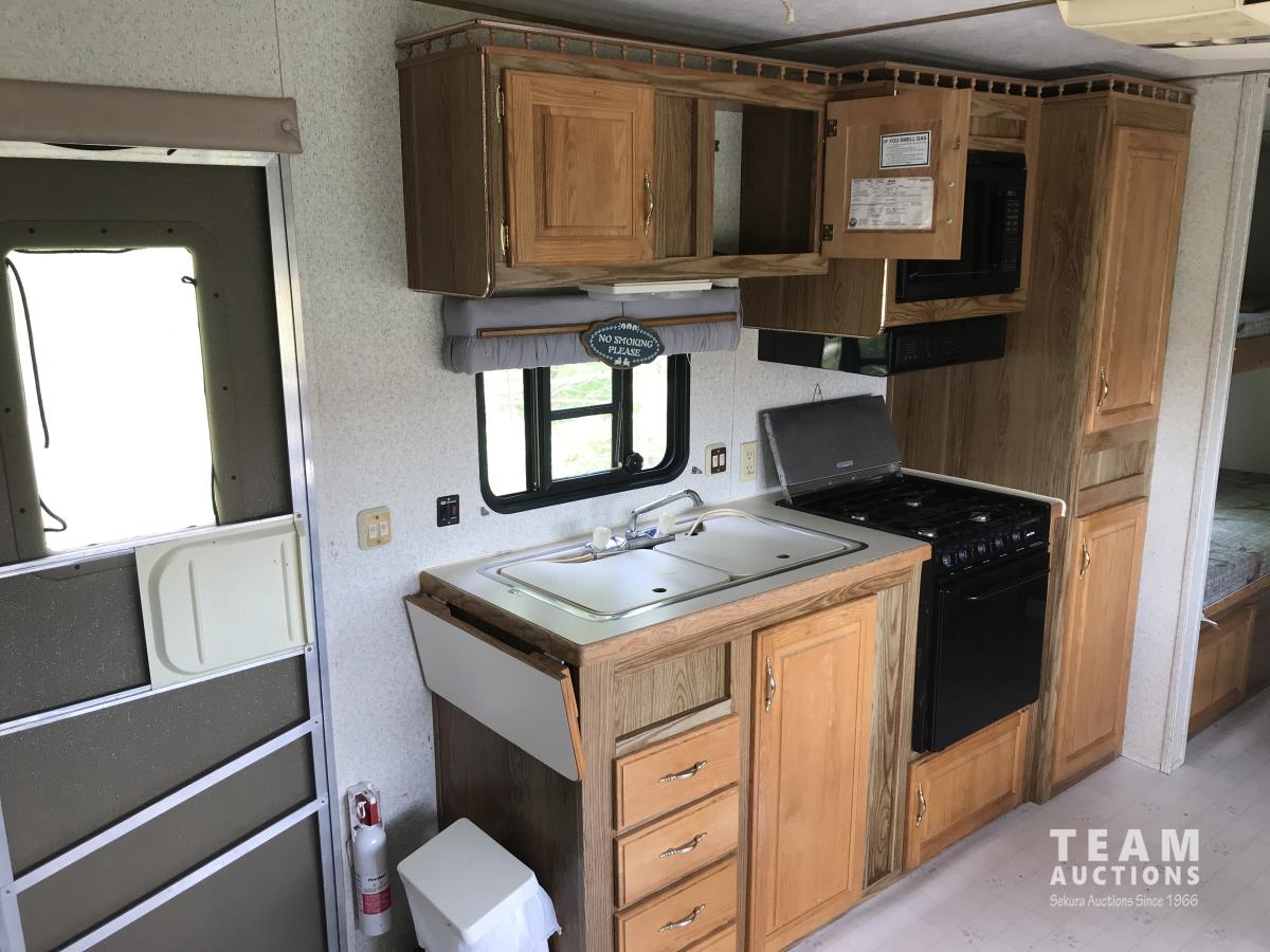 10 ft single slide, fridge, stove, dinette, bedroom, couch, bathroom, sleeps 6, bunk beds, a/c, 17 ft awning, (2) 30 lb propane tanks, roof access ladder, G10 9501 generator, 7.00R15 tires