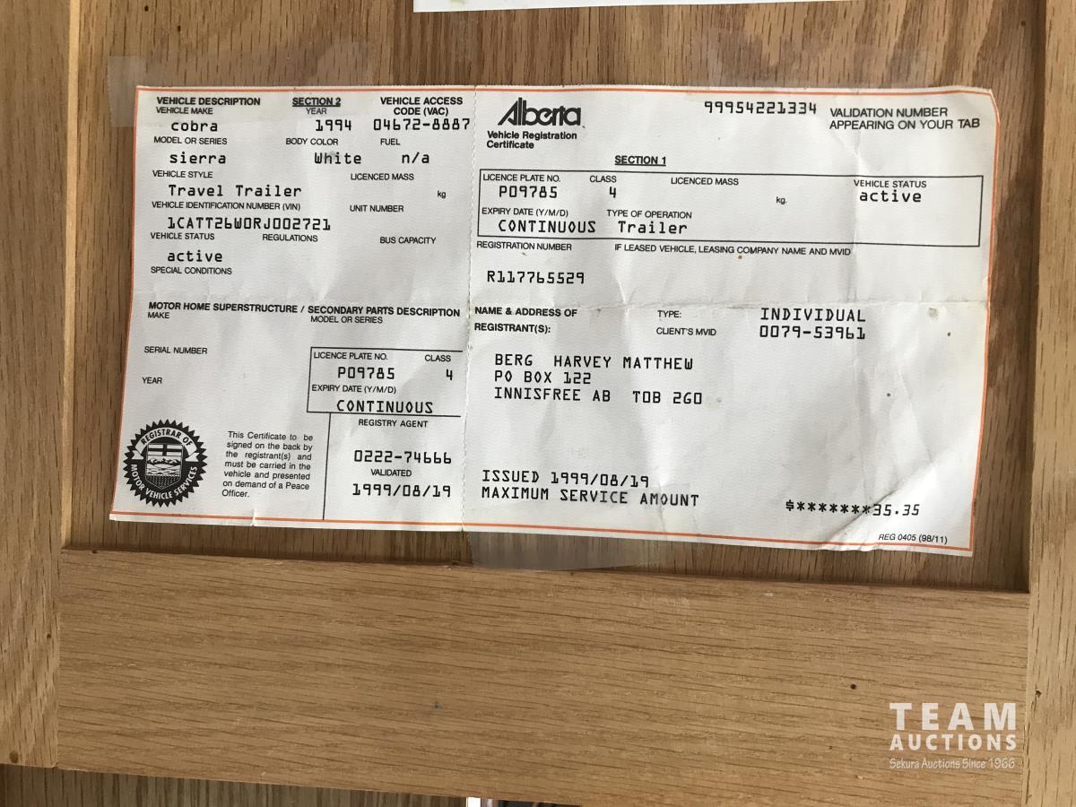312 1994 Cobra Sierra 27 Ft Fifth Wheel Trailer