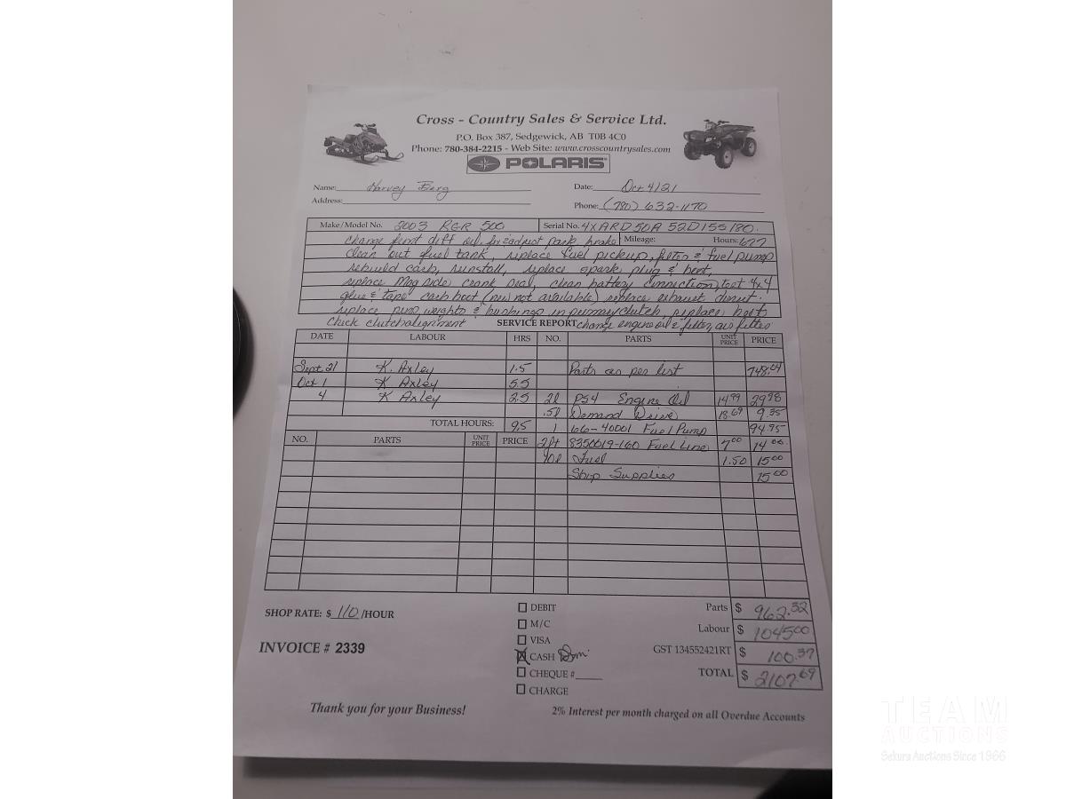 310 2003 Polaris Ranger 4X4 Side By Side