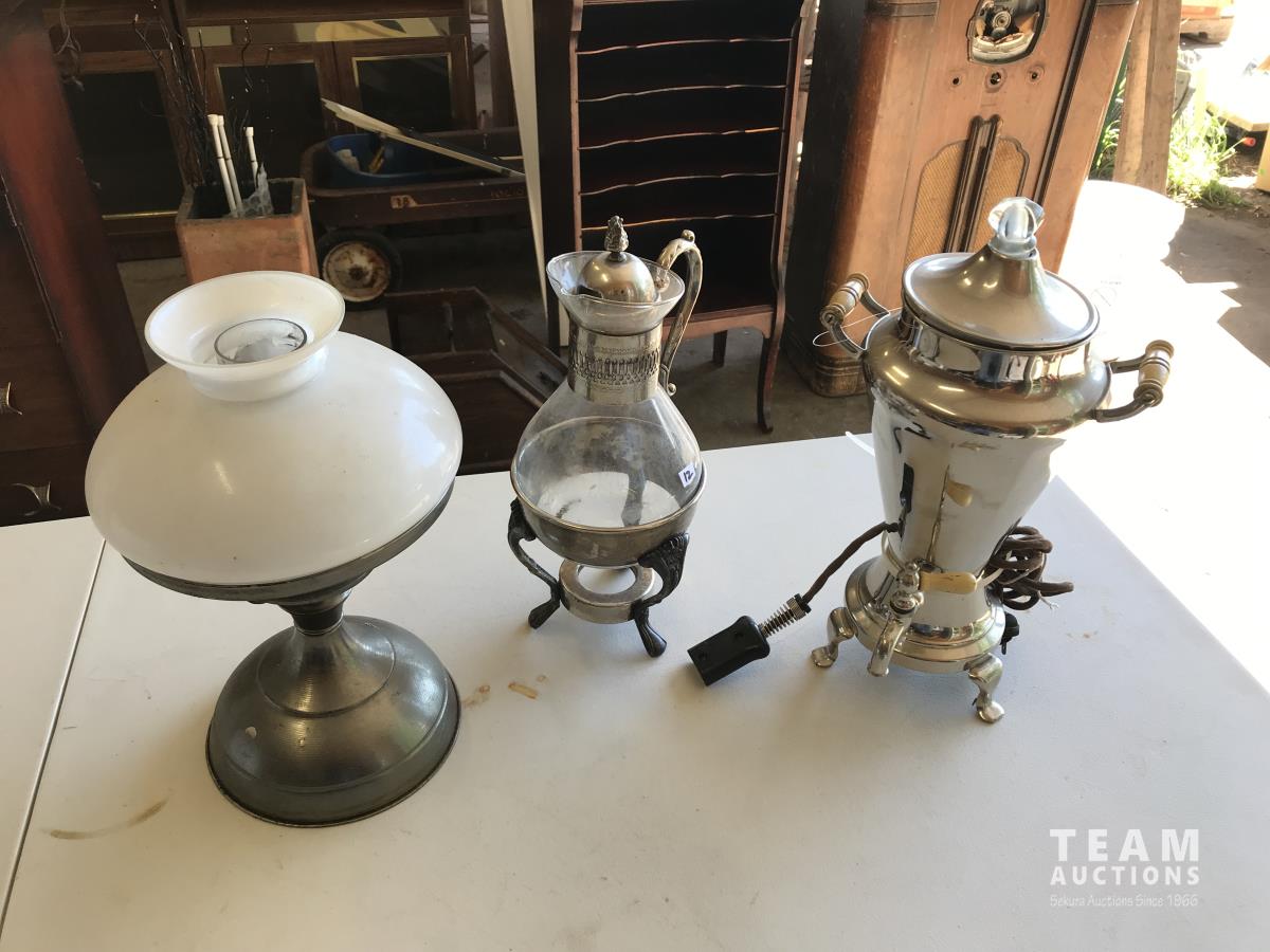 131 Coffee Maker, Tea Pot & Kerosene Lamp w/ Shade
