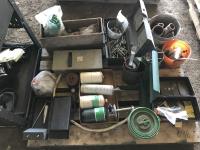 propane torch, qty of bolts, work bench, electrical panel box, tap & die, router, drill, tags, needles & assorted tools
