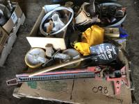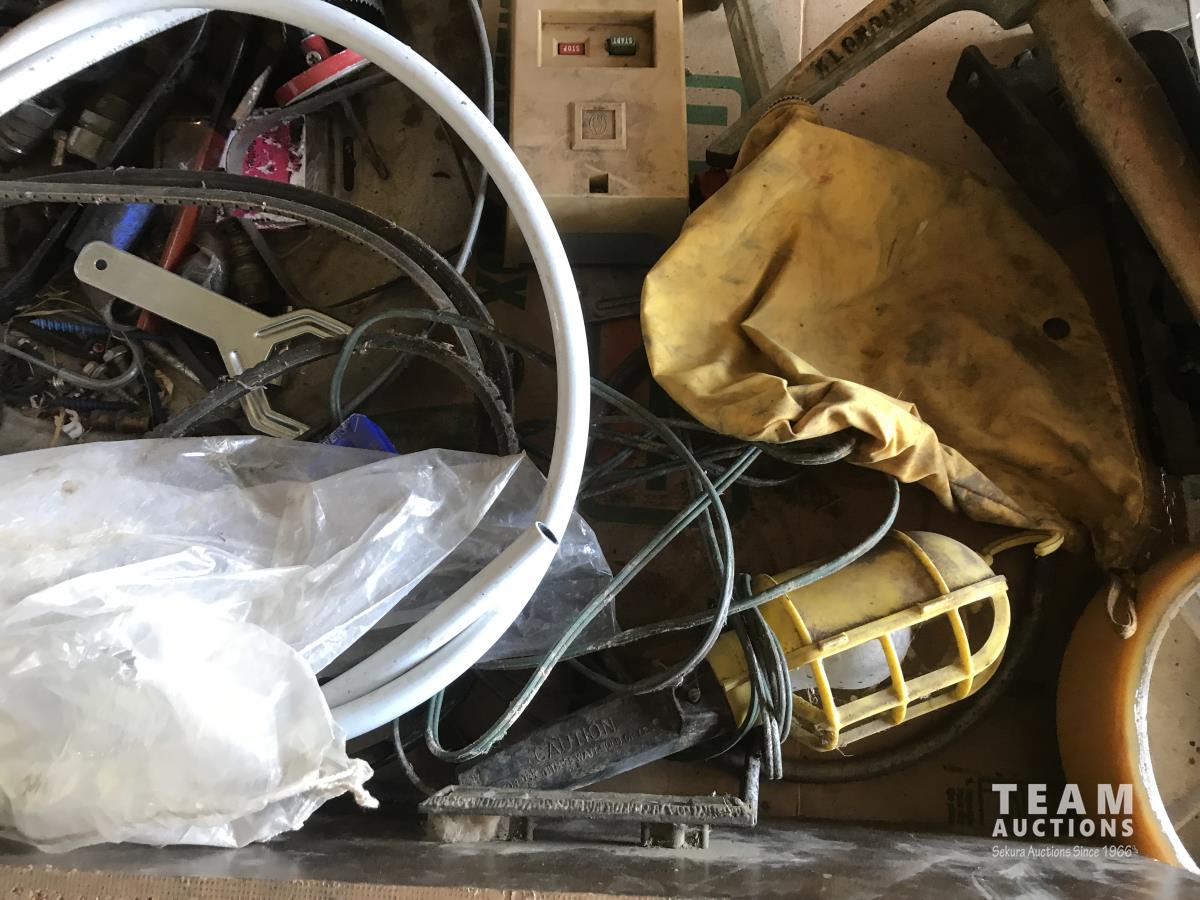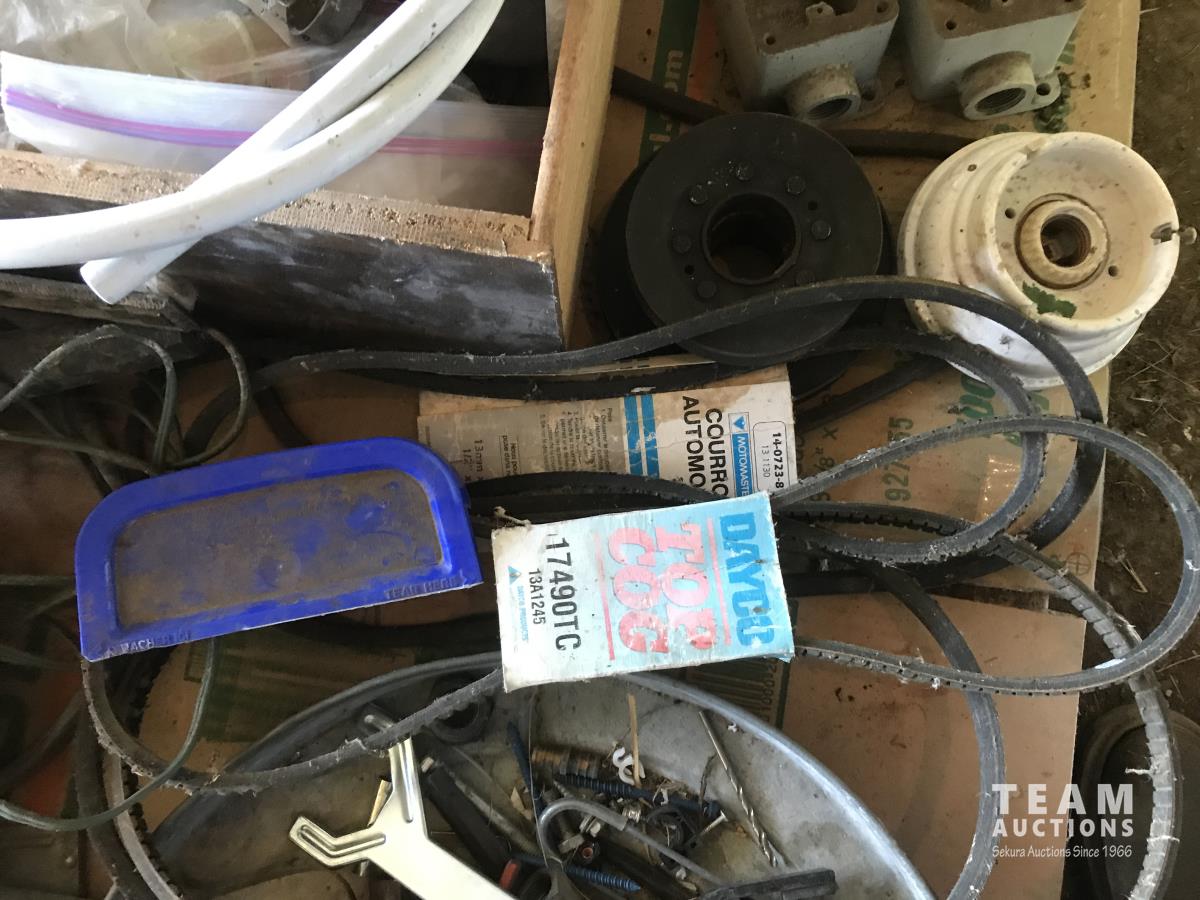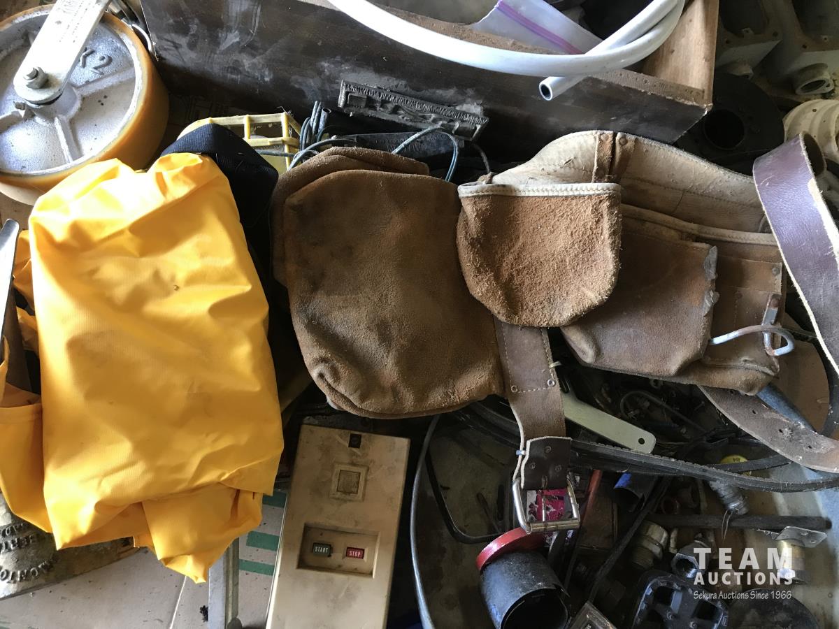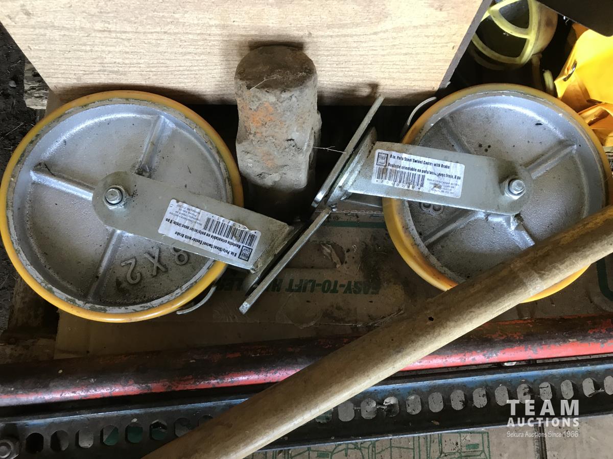 Jack, tool belt, 8 x 2 castor wheels, trouble light, qty of seals & assorted shop supplies