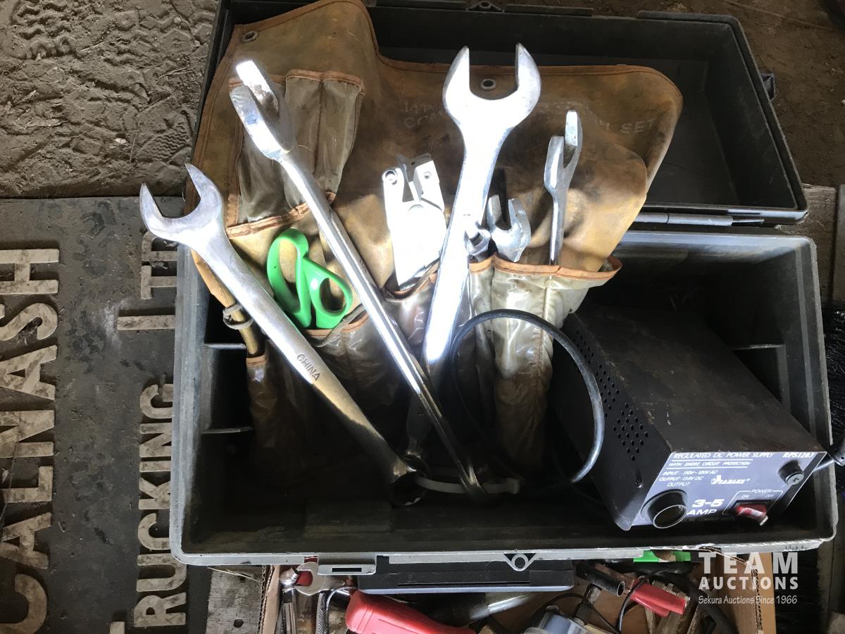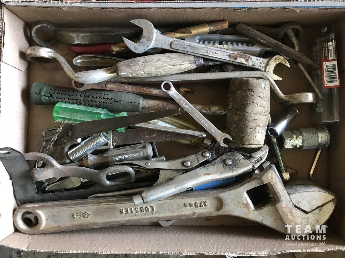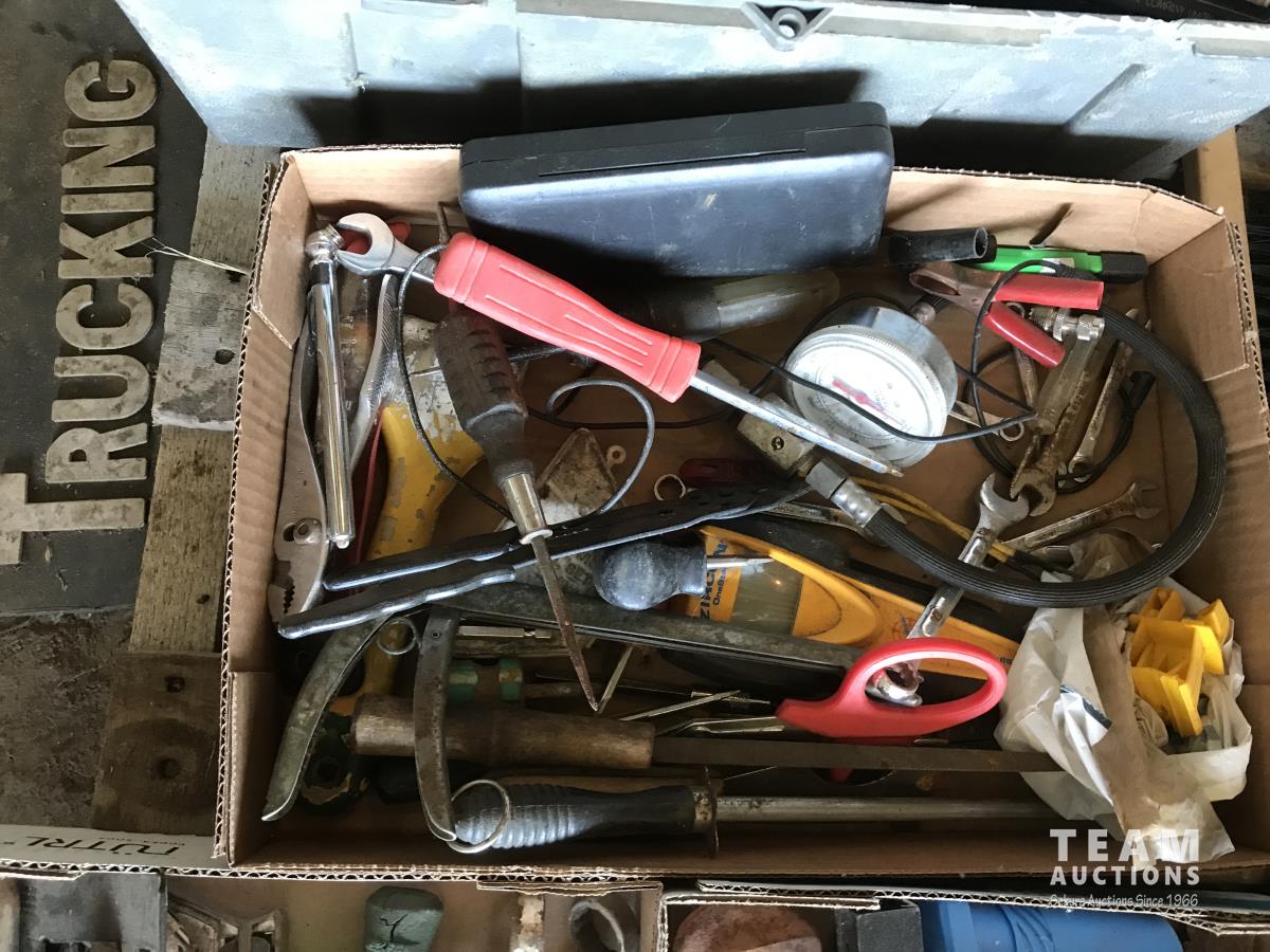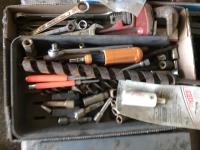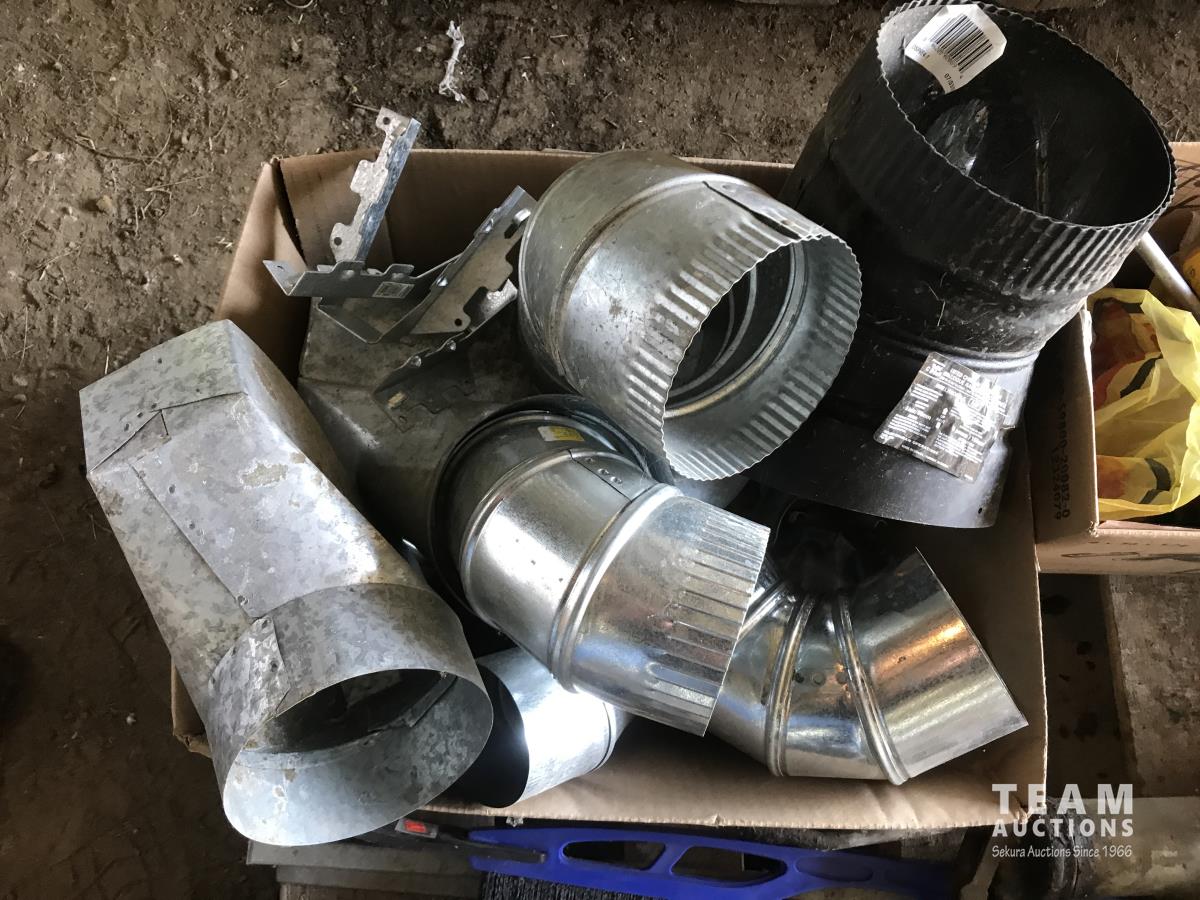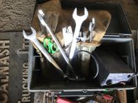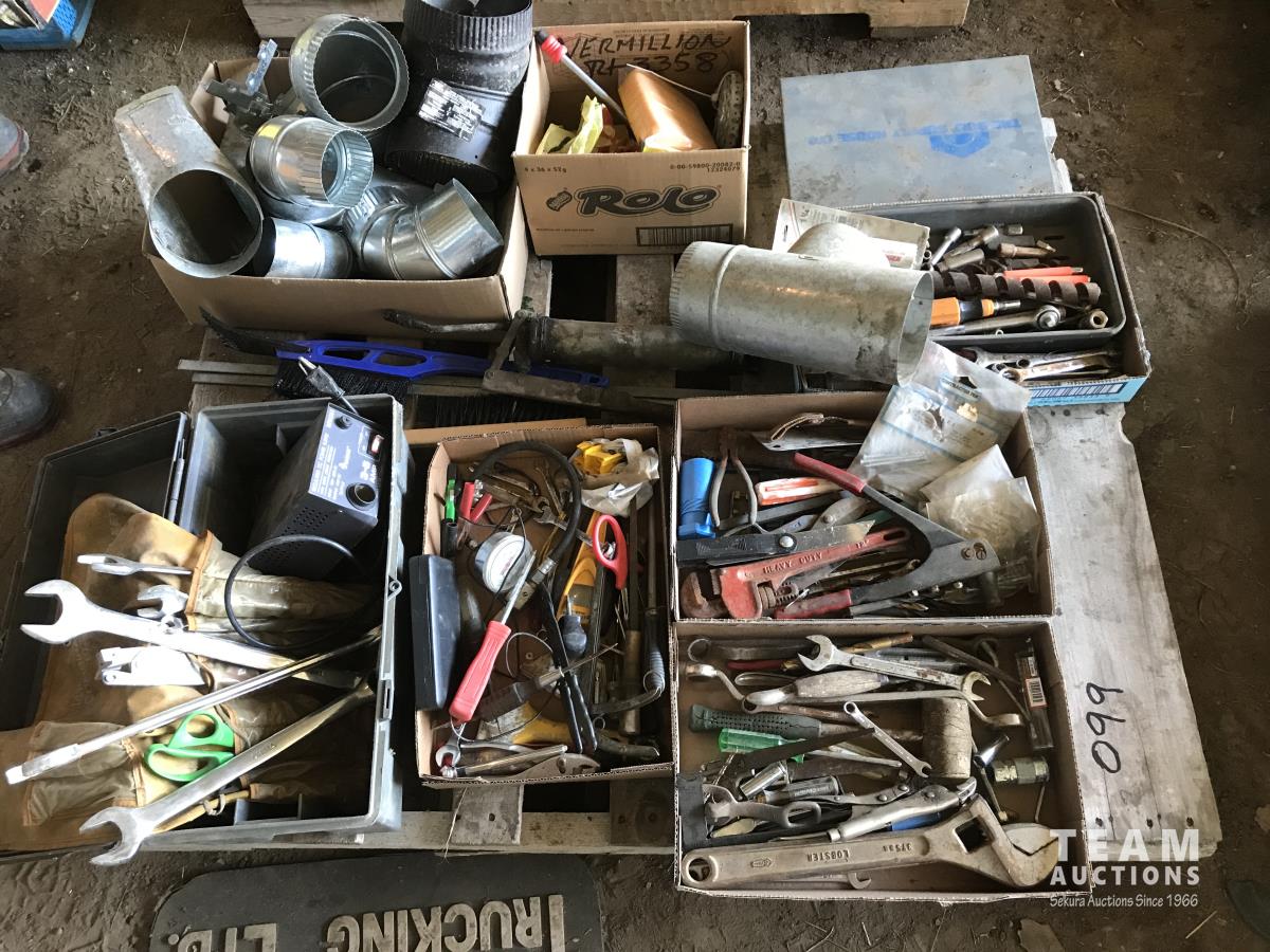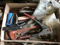 Ducting, tool box, wrenches, assortment of screws, rivet gun & qty of hand tools