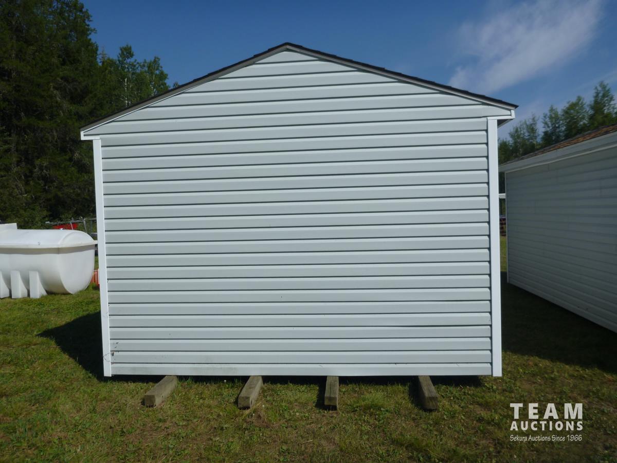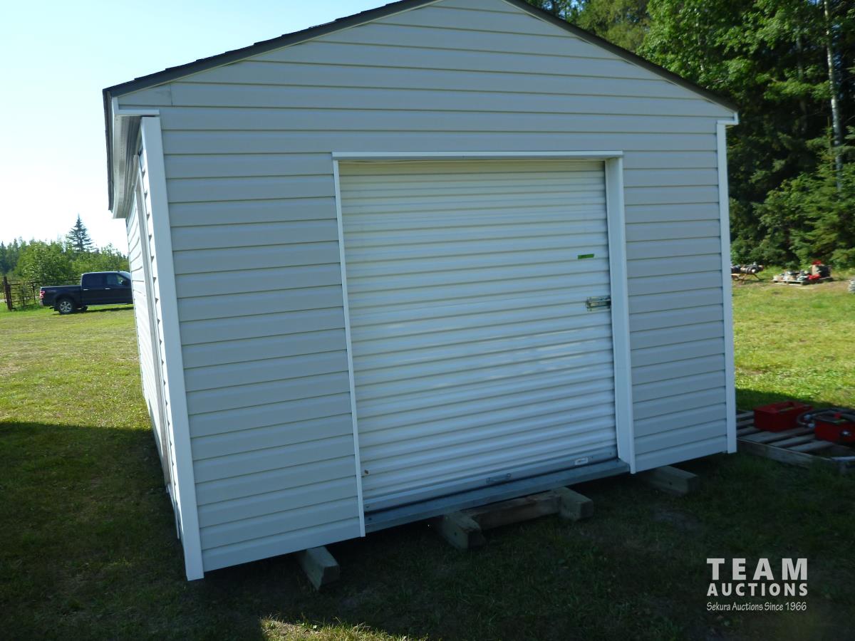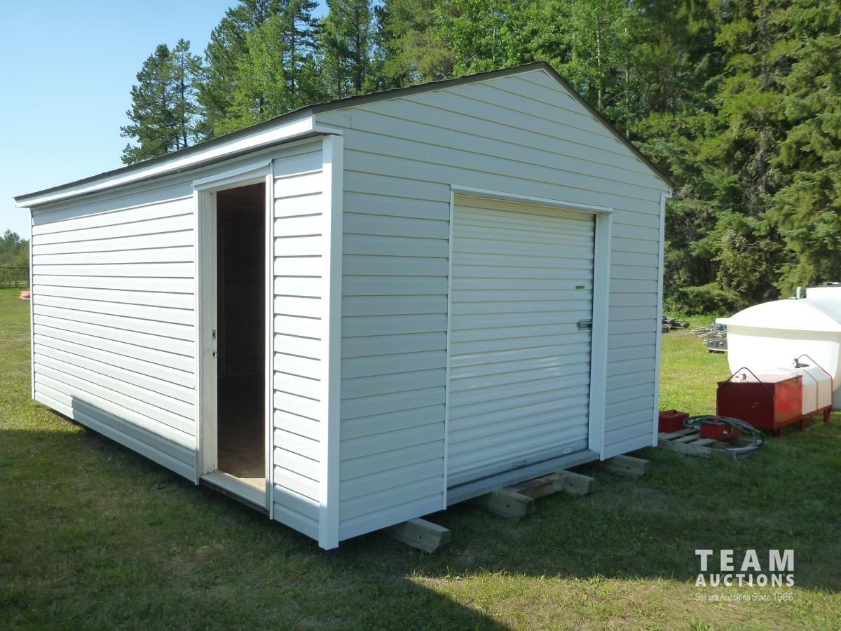walk in door, roll up 6 ft door, on (4) wood skids, vinyl siding, asphalt roof