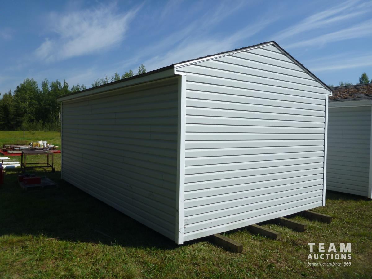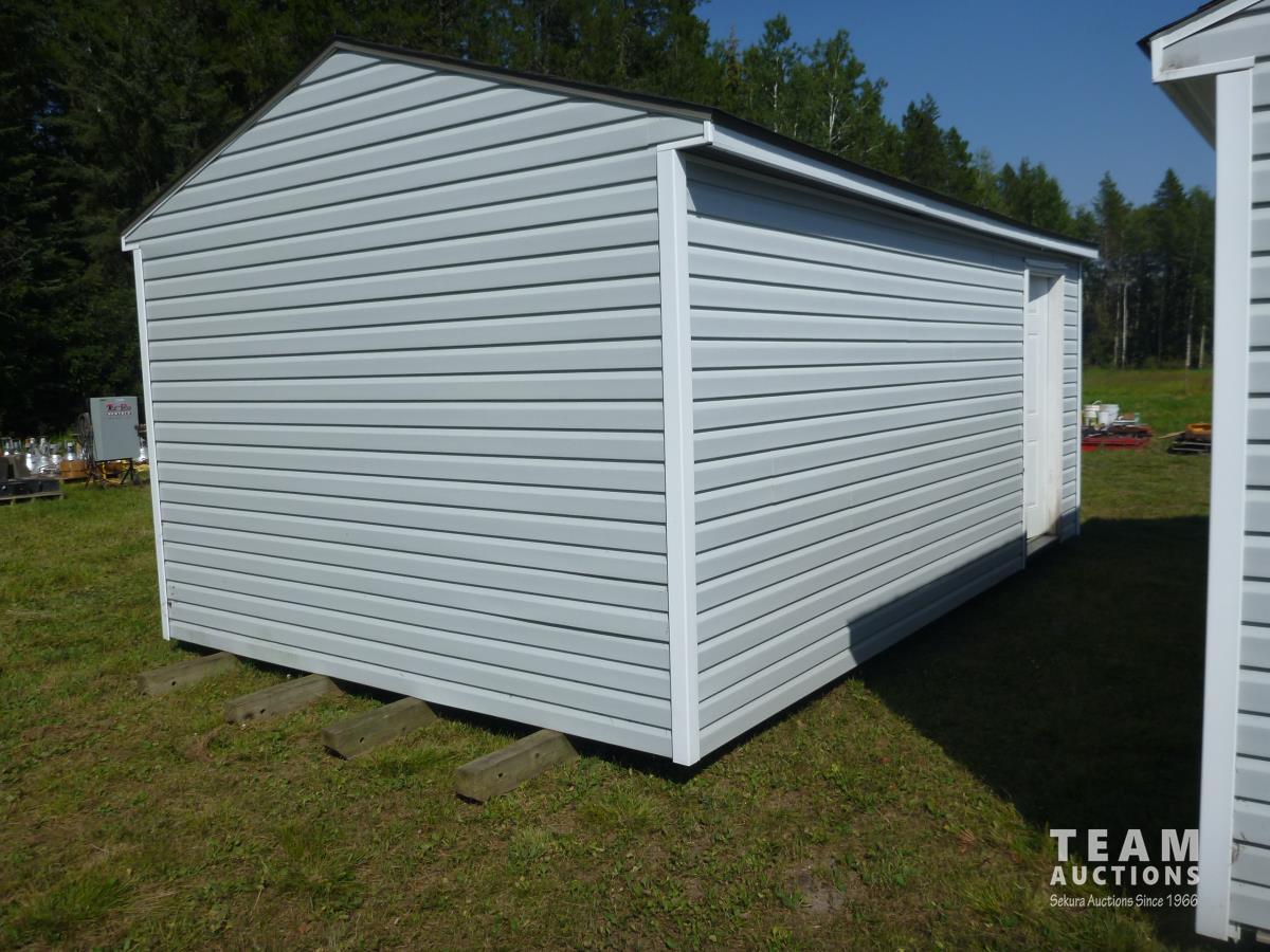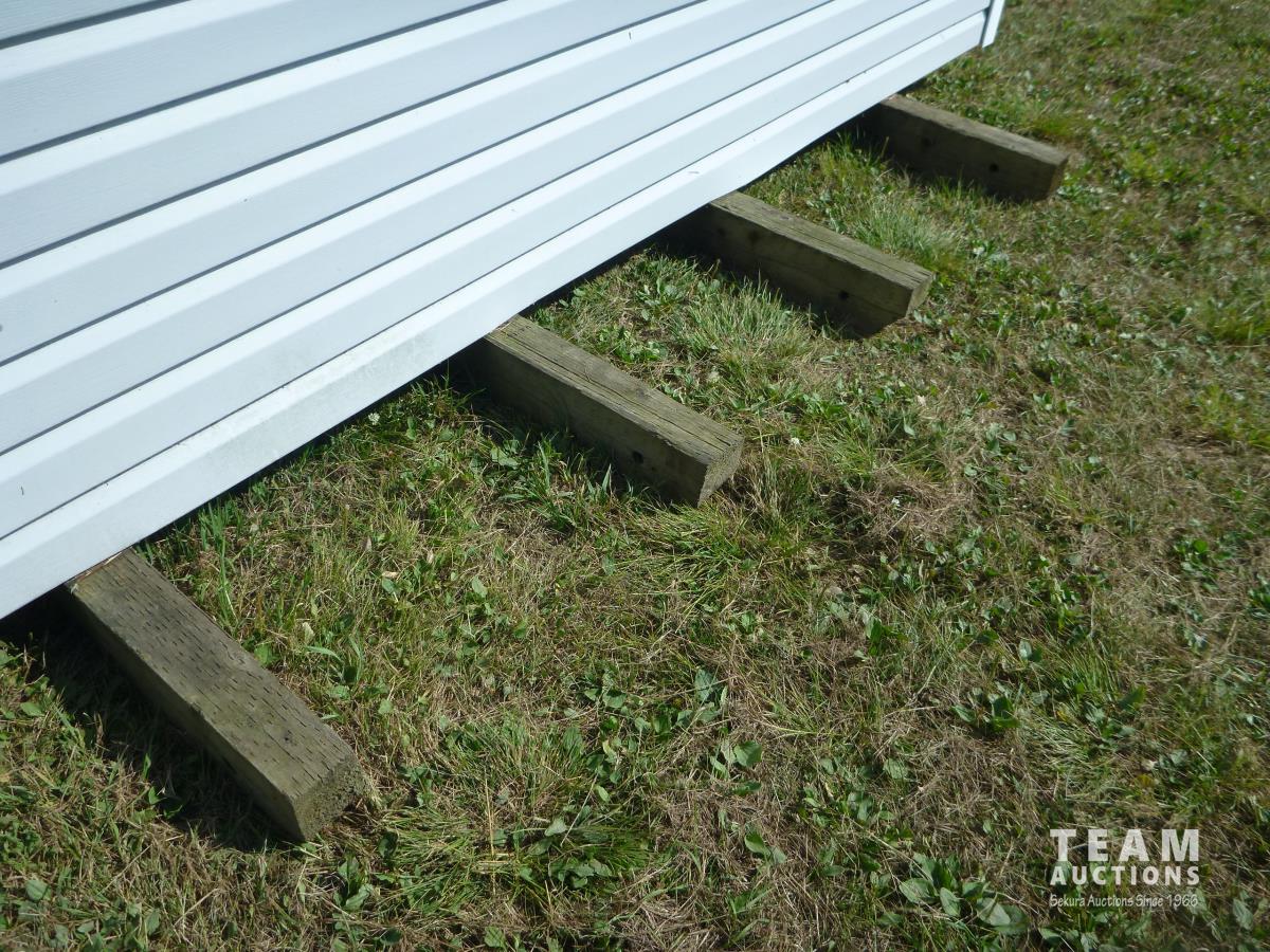 walk in door, roll up 6 ft door, on (4) wood skids, vinyl siding, asphalt roof