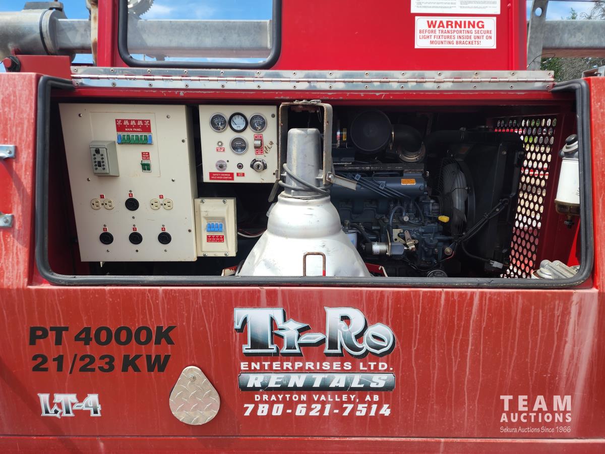 80 inch wide, torflex suspension, Kubota engine, 1430L fuel tank, 235/80R16 tires on aluminum rims, lift 30 ft high, single phase generator, (4) 1000 watt bulbs, 110/220 power outlets