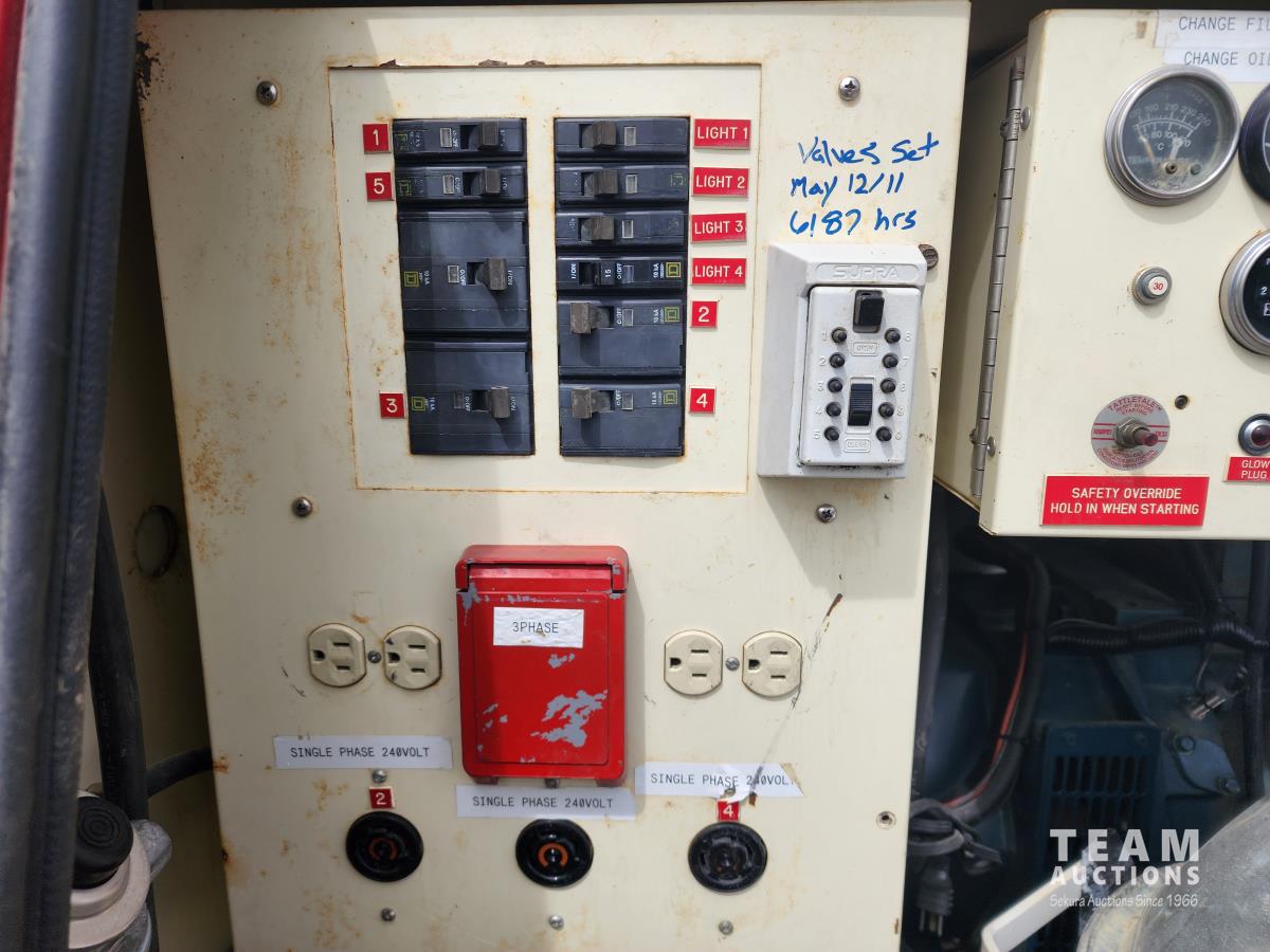 80 inch wide, torflex suspension, Kubota engine, 1430L fuel tank, 235/80R16 tires on aluminum rims, lift 30 ft high, three phase generator, (4) 1000 watt bulbs, 110/220 single and 3 phase power outlets, large oil sump